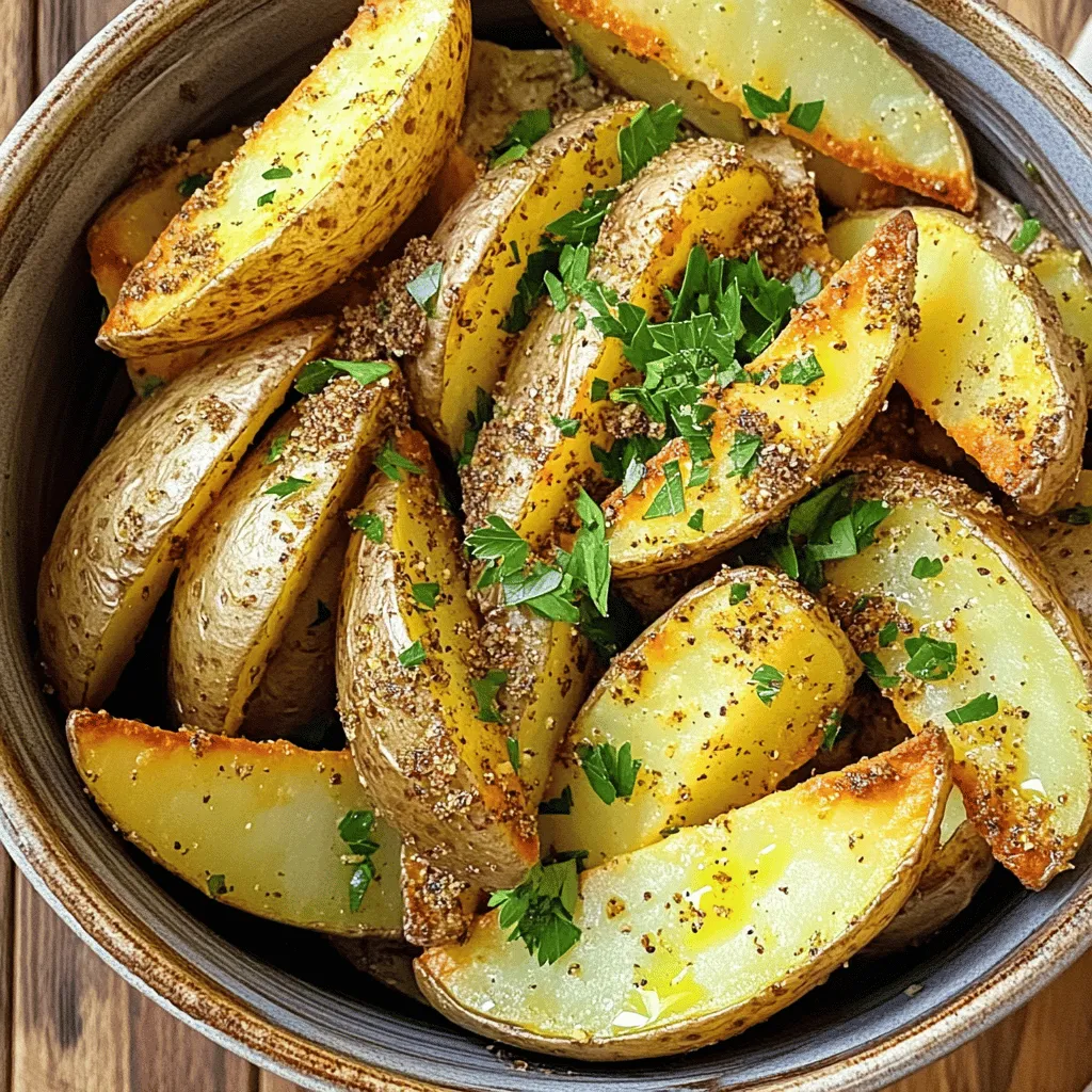 Start with fresh russet potatoes. Wash them well under cold water. Scrub the skins to remove dirt. A clean surface helps you get better flavor. Next, cut each potato into wedges. Aim for about eight wedges per potato. This gives you nice, even pieces that cook well. Place the wedges in a large bowl as you cut them.