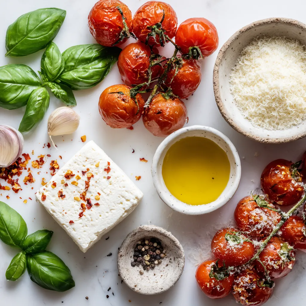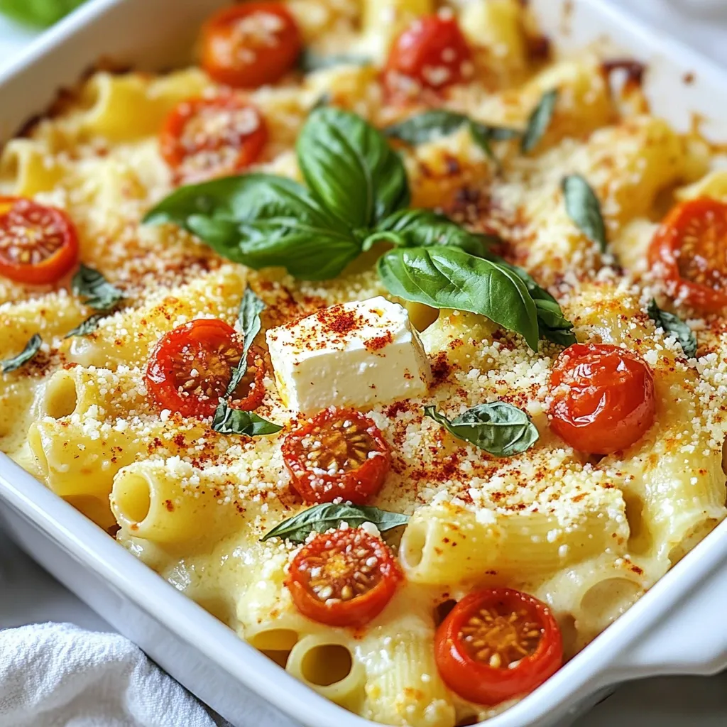 - 200g pasta (like penne or fusilli) - 200g block of feta cheese - 2 cups cherry tomatoes, halved - 4 cloves garlic, minced - 1/2 teaspoon red pepper flakes (optional) - 1/4 cup olive oil - Salt and black pepper to taste - Fresh basil leaves, for garnish - Grated Parmesan cheese, for serving Using good ingredients makes a big difference in flavor. Fresh cherry tomatoes burst with sweet juice. Quality feta cheese adds creamy richness. Olive oil enhances the dish with its smooth taste. Fresh garlic gives a punch of flavor, making each bite better. Don’t skimp on these items; they make the dish shine. If you can't find feta, try goat cheese. It will still taste great. Use any pasta shape you like, but penne or fusilli work best. For garlic fans, add more cloves for extra flavor. If you want a kick, increase the red pepper flakes. Don't have fresh basil? Use dried basil or parsley instead. Adjust based on what you have at home! {{ingredient_image_1}} Start by gathering all your ingredients. You need: - 200g pasta (penne or fusilli works best) - 200g block of feta cheese - 2 cups cherry tomatoes, halved - 4 cloves garlic, minced - 1/2 teaspoon red pepper flakes (optional) - 1/4 cup olive oil - Salt and black pepper to taste - Fresh basil leaves, for garnish - Grated Parmesan cheese, for serving Wash the cherry tomatoes and slice them in half. Mince the garlic and set it aside. Preheat your oven to 400°F (200°C) so it’s hot when you’re ready to bake. In a large baking dish, mix the halved tomatoes, minced garlic, red pepper flakes, olive oil, salt, and black pepper. Toss everything well to coat the tomatoes. Next, make a space in the center of the dish for the feta. Place the block of feta cheese there. Drizzle a bit more olive oil on top of the feta. Season it lightly with salt and pepper. Now, put the dish in the oven and bake for about 30 minutes. You want the tomatoes to burst and caramelize while the feta gets soft and golden. This will create a rich and creamy base for your pasta. While the feta and tomatoes bake, cook your pasta. Boil water in a pot and add a pinch of salt. Once the water is boiling, add the pasta. Follow the package instructions for cooking time. You want the pasta to be al dente. Before draining, reserve 1/2 cup of the pasta water. This starchy water will help you adjust the sauce later. Drain the pasta once it’s cooked, and set it aside. When the feta and tomatoes finish baking, take them out of the oven. Use a fork to mash the feta into the tomatoes. This will create a creamy sauce. Add the cooked pasta to the baking dish and toss everything together. If the sauce is too thick, pour in a little reserved pasta water at a time until it reaches your desired creaminess. To make the sauce rich and creamy, start with high-quality feta. The creaminess comes from mashing the baked feta with tomatoes. Use a fork to mix them well. If the sauce is too thick, add some of the reserved pasta water. This will help it become silky smooth. If you like heat, add more red pepper flakes. Start with just a pinch if you prefer mild flavors. You can always sprinkle more on top when serving. For a unique twist, try adding a splash of lemon juice to brighten the dish. Serve your baked feta pasta warm, topped with fresh basil leaves. A sprinkle of grated Parmesan cheese adds extra flavor. Pair it with a light salad or crusty bread for a complete meal. Don't forget to share your delicious creation with friends and family! Pro Tips Use Fresh Ingredients: Fresh cherry tomatoes and high-quality feta cheese make a significant difference in flavor. Opt for in-season tomatoes for the best taste. Adjust the Spice Level: If you prefer a milder dish, omit the red pepper flakes or use less. You can always add more spice later if desired. Experiment with Herbs: While basil is a classic garnish, try adding fresh oregano or thyme for additional flavor. You can also mix dried herbs into the pasta for an extra punch. Save Leftovers Wisely: Store any leftovers in an airtight container in the fridge. Reheat gently on the stove with a splash of water to restore creaminess. {{image_2}} You can make baked feta pasta even better by adding vegetables. Try using spinach, zucchini, or bell peppers. Just chop them up and mix them with the tomatoes. This gives you more flavor and nutrition. Roasting the veggies with the tomatoes enhances their taste. You can add any vegetable you like to make it your own. Want to make your dish heartier? Add protein! Grilled chicken, shrimp, or chickpeas work great. Simply cook the protein separately and mix it in before serving. This adds a nice texture and makes the meal more filling. You can even use leftover meats to save time. Feta isn’t the only cheese you can use. Try goat cheese or ricotta for a different taste. Both melt well and add creaminess to the dish. If you want a sharper flavor, use Parmesan instead. Each cheese brings its own special twist, so feel free to experiment. Mixing cheeses can also add depth to your sauce. After you enjoy your baked feta pasta, store leftovers in an airtight container. Let the dish cool down first. Place it in the fridge for up to three days. If you want to keep it longer, consider freezing instead. To reheat, use the oven for the best results. Preheat the oven to 350°F (175°C). Place the pasta in a baking dish and cover it with foil. Heat for about 15-20 minutes. You can also use the microwave. Place a serving in a bowl and heat in 30-second intervals until warm. You can freeze baked feta pasta for up to three months. Make sure it cools first, then put it in a freezer-safe container. When you are ready to eat, thaw it in the fridge overnight. Reheat as mentioned above. The pasta will still taste great! You can use any short pasta, like penne or fusilli. These shapes hold the sauce well. The ridges help catch the creamy feta and tomatoes. I prefer penne for its perfect bite. Fusilli also works great with its twists and turns. 