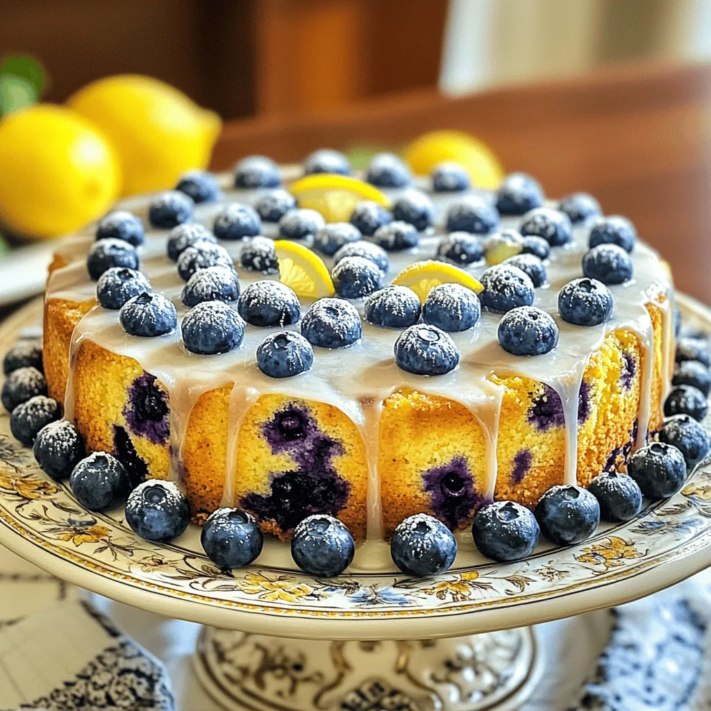 To make a tasty Blueberry Lemon Pound Cake, gather these ingredients: - 1 ½ cups all-purpose flour - 1 teaspoon baking powder - ½ teaspoon baking soda - ½ teaspoon salt - ¾ cup unsalted butter, softened - 1 cup granulated sugar - 3 large eggs - 1 tablespoon lemon zest - 2 tablespoons fresh lemon juice - 1 teaspoon vanilla extract - 1 cup fresh blueberries (or frozen, if in season) - ½ cup powdered sugar (for glaze) - 2 tablespoons fresh lemon juice (for glaze) If you need to swap ingredients, here are some ideas: - Use whole wheat flour for a heartier cake. - Swap unsalted butter for coconut oil for a dairy-free option. - You can use brown sugar instead of granulated sugar for a richer flavor. - If you don’t have fresh blueberries, frozen ones work too. Just toss them in flour to prevent sinking. - For a citrus twist, try orange zest instead of lemon. Using high-quality ingredients makes a big difference. Fresh lemons give a bright flavor. Good butter adds richness. When you use fresh blueberries, you get the best taste and texture. The better your ingredients, the better your cake will be. Always choose the best you can find for a delicious result. First, set your oven to 350°F (175°C). This is the right temperature for baking. Next, grease a 9x5 inch loaf pan with butter or non-stick spray. This step helps the cake slide out easily after baking. In a medium bowl, whisk together the dry ingredients. Combine 1 ½ cups of all-purpose flour, 1 teaspoon of baking powder, ½ teaspoon of baking soda, and ½ teaspoon of salt. Mixing these well ensures the cake rises evenly and has great texture. In a large bowl, beat ¾ cup of softened unsalted butter with 1 cup of granulated sugar. Use an electric mixer on medium speed. Mix for about 3-4 minutes until the mixture is light and fluffy. This step adds air to the batter, making your cake tender. Add 3 large eggs to the butter-sugar mixture, one at a time. Mix well after each egg. Then, add 1 tablespoon of lemon zest, 2 tablespoons of fresh lemon juice, and 1 teaspoon of vanilla extract. Mix until everything is well combined. These flavors create a bright and fresh taste. Gradually add the dry mixture to the wet ingredients. Mix just until combined. Avoid overmixing, as this can make the cake tough. A few flour streaks are okay; the batter will mix more as you fold in the blueberries. Gently fold in 1 cup of fresh blueberries using a spatula. Be careful not to crush them. This step ensures the blueberries are evenly spread throughout the batter for bursts of flavor in each bite. Pour the batter into the prepared loaf pan. Smooth the top with a spatula. Bake in the oven for 55-60 minutes. To check if it is done, insert a toothpick into the center; it should come out clean. If the top browns too quickly, tent it with foil. Once baked, let the cake cool in the pan for about 10 minutes. Then, transfer it to a wire rack to cool completely. This helps the cake set properly and enhances its flavor. To make a moist pound cake, use softened butter. Softened butter traps air well, making the cake fluffy. Don't overmix your batter. Mix just until the dry and wet ingredients combine. Overmixing can lead to a dry cake. Also, don't skip the eggs. They add moisture and richness. You can add a bit more lemon juice for extra zing, but be careful not to add too much. One big mistake is not preheating your oven. Always preheat for even baking. Another mistake is skipping the greasing step. Grease your pan well to avoid sticking. Make sure to check your cake with a toothpick. If it comes out clean, your cake is ready. If the top browns too fast, cover it with foil. This helps it bake evenly without burning. When adding blueberries, be gentle. Use a spatula to fold them in slowly. This helps keep them whole. If you break them, the color can bleed into the batter. You can also toss the blueberries in a bit of flour before adding them. This helps them stay suspended in the batter. This way, you get blueberries in every slice! {{image_2}} You can switch up the fruits in this cake to match your taste. Try raspberries or blackberries for a twist. Both fruits give a nice tartness that pairs well with lemon. You can also add diced peaches or strawberries to add sweetness. If you want a different flavor, consider adding nuts like walnuts or almonds. These add crunch and a unique taste to the cake. If you need a gluten-free cake, replace all-purpose flour with a gluten-free blend. Look for a blend that has xanthan gum for better texture. You can find many brands at the store. Just be sure to check the label to ensure it fits your diet. The rest of the recipe stays the same. This way, you still get a rich, tasty pound cake without gluten. To make this cake vegan, replace the eggs with flaxseed meal or applesauce. Use 1 tablespoon of flaxseed meal mixed with 3 tablespoons of water for each egg. For butter, switch to a vegan butter or coconut oil. Make sure your vanilla extract is pure and made without animal products. The lemon juice and zest will still add that fresh flavor. You won’t miss the eggs or dairy in this cake! To keep your Blueberry Lemon Pound Cake fresh, wrap it tightly. Use plastic wrap or aluminum foil. This helps seal in moisture. Store it at room temperature for up to three days. If you want it to last longer, move it to the fridge. It can stay fresh there for up to a week. If you have leftovers, freezing is a great option. First, let the cake cool completely. Once cool, slice it into pieces. Wrap each slice in plastic wrap. This helps prevent freezer burn. Then, place the wrapped slices in a freezer-safe bag. You can freeze the cake for up to three months. When you want to enjoy your cake again, reheating is easy. For individual slices, use the microwave. Heat it for about 15-20 seconds. This warms it without drying it out. If you prefer the oven, preheat it to 350°F (175°C). Place the cake on a baking sheet for 10-15 minutes. This keeps it soft a