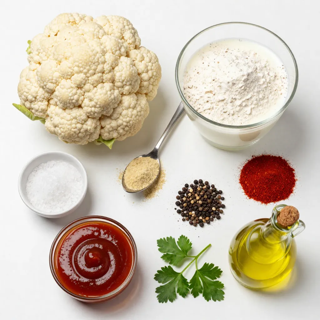 To make these tasty Buffalo Cauliflower Bites, gather these simple ingredients:
