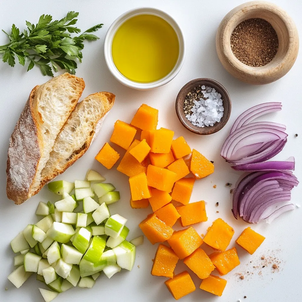 To make Butternut Squash Apple Bruschetta, gather these items: