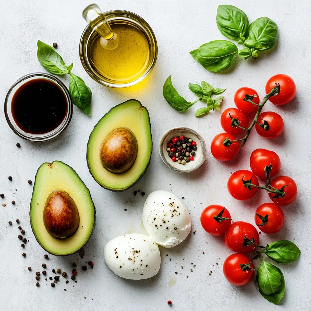 - 2 ripe avocados - 1 cup cherry tomatoes, halved - 1 cup fresh mozzarella balls, halved - 1/4 cup fresh basil leaves, chopped - 2 tablespoons balsamic glaze - 1 tablespoon olive oil - Salt and pepper to taste If you want to switch things up, you can use other cheeses. Feta or goat cheese works well. You can also add grilled chicken or shrimp for protein. Instead of balsamic glaze, try a lemon vinaigrette for a bright twist. You can use any fresh herbs you like, such as parsley or cilantro, instead of basil. Each serving has about 300 calories. The dish offers healthy fats from avocados and protein from mozzarella. You get vitamins A and C from the tomatoes and basil. This meal is low in carbs and high in flavor, making it a great choice for a light meal. {{ingredient_image_1}} To start, take your ripe avocados. Cut them in half lengthwise. Be careful to avoid cutting too deep. Remove the pit gently. Next, scoop out a small part of the flesh from each half. This helps create space for the filling. Place the scooped flesh in a bowl and set it aside. This step is key for a good texture. Now, let’s mix the Caprese filling. In a bowl, add the halved cherry tomatoes. Then, add the halved mozzarella balls. Next, toss in the chopped basil. This is where the fresh flavors come together. Drizzle in the olive oil and balsamic glaze. Don’t forget to season with salt and pepper. Mix all the ingredients gently. Then, fold in the reserved avocado flesh. Make sure everything is well combined. Now comes the fun part: stuffing the avocados! Take your prepared avocado halves. Spoon the Caprese mixture into each half. Make sure to pack it in lightly. This ensures each bite is full of flavor. If you like, drizzle some extra balsamic glaze on top. This adds a nice touch and look. Enjoy your Caprese stuffed avocados right away! To make great Caprese stuffed avocados, choose ripe ones. Look for avocados that feel slightly soft when you press them. A perfect avocado should have smooth, dark skin. Avoid any with brown spots or a mushy feel. If you find hard avocados, leave them at room temperature for a few days. They will ripen nicely. You can easily adapt this recipe to your taste. Try adding ingredients like diced cucumber or bell peppers for extra crunch. If you love spice, add crushed red pepper flakes for heat. You can also use different herbs, like parsley or oregano, instead of basil. For a twist, mix in some pesto with the filling. The options are endless! Make your dish pop by presenting it well. Serve stuffed avocados on a colorful platter. Drizzle balsamic glaze on top for a glossy finish. Sprinkle extra basil leaves around the plate for color. You can also add a touch of olive oil for shine. These small details make your dish look gourmet and inviting. Pro Tips Choose Ripe Avocados: Make sure the avocados are ripe to ensure a creamy texture and easy scooping. They should yield slightly to gentle pressure. Use Fresh Ingredients: Opt for fresh mozzarella and basil for the best flavor. Fresh ingredients elevate the dish and make it more vibrant. Customize the Filling: Feel free to add other ingredients such as olives or arugula to the Caprese mixture for a unique twist on flavors. Serve Immediately: To maintain the freshness and prevent browning of the avocado, serve the stuffed avocados right after preparation. {{image_2}} You can change the cheese in your Caprese stuffed avocados. Instead of mozzarella, try burrata. Burrata is creamy and rich. Feta cheese also adds a nice tang. Goat cheese gives a different flavor too. Each cheese will change the taste, so choose what you like best. Want to make your dish heartier? Add proteins! Grilled chicken or shrimp works well. You can also add chickpeas for a vegetarian option. Just mix your choice of protein into the Caprese filling. This will make your meal more filling and tasty. Balsamic glaze is a classic, but feel free to get creative. Try a lemon vinaigrette for a zesty kick. A pesto drizzle adds herbaceous flavors. You can also use a simple olive oil and vinegar mix. Each dressing changes the flavor, so play around until you find your favorite! To keep your Caprese stuffed avocados fresh, store them in the fridge. Place them in an airtight container. This limits exposure to air and slows browning. If you have leftover filling, store it separately. You can use it for salads or sandwiches later. Always enjoy the stuffed avocados within a day for the best taste. Caprese stuffed avocados are best served cold. If you want to warm them, use a microwave. Heat on low for about 20 seconds. Be careful not to overheat. This can make the avocado mushy. I suggest enjoying them fresh for the best flavor and texture. - Avocados: 3 to 5 days when ripe. - Cherry tomatoes: About 1 week in the fridge. - Mozzarella balls: Up to 1 week once opened. - Fresh basil: Lasts about 3 to 5 days. - Balsamic glaze: Can last for several months if unopened. Always check for freshness before using. This ensures your dish tastes great! Yes, you can prepare the filling ahead of time. Mix the tomatoes, mozzarella, and basil. Keep it in the fridge. Stuff the avocados just before serving to keep them fresh. If you don’t have mozzarella, use feta or goat cheese. These cheeses add a nice tang. They also work well with the other flavors. Yes, Caprese Stuffed Avocados are gluten-free. All the ingredients are naturally gluten-free. Enjoy them without worry! To keep avocados fresh, add lemon juice. Coat the flesh lightly before stuffing. This will slow down browning and keep them vibrant. Absolutely! Cherry tomatoes are great, but you can use grape or heirloom tomatoes too. Just cut them into smaller pieces. Each type adds a unique twist to the dish. Caprese Stuffed Avocados are easy and fun to make. We covered the ingredients, steps, and tips to help you create this tasty dish. Remember to choose ripe avocados for the best flavor. You can customize your filling with different cheeses, prote