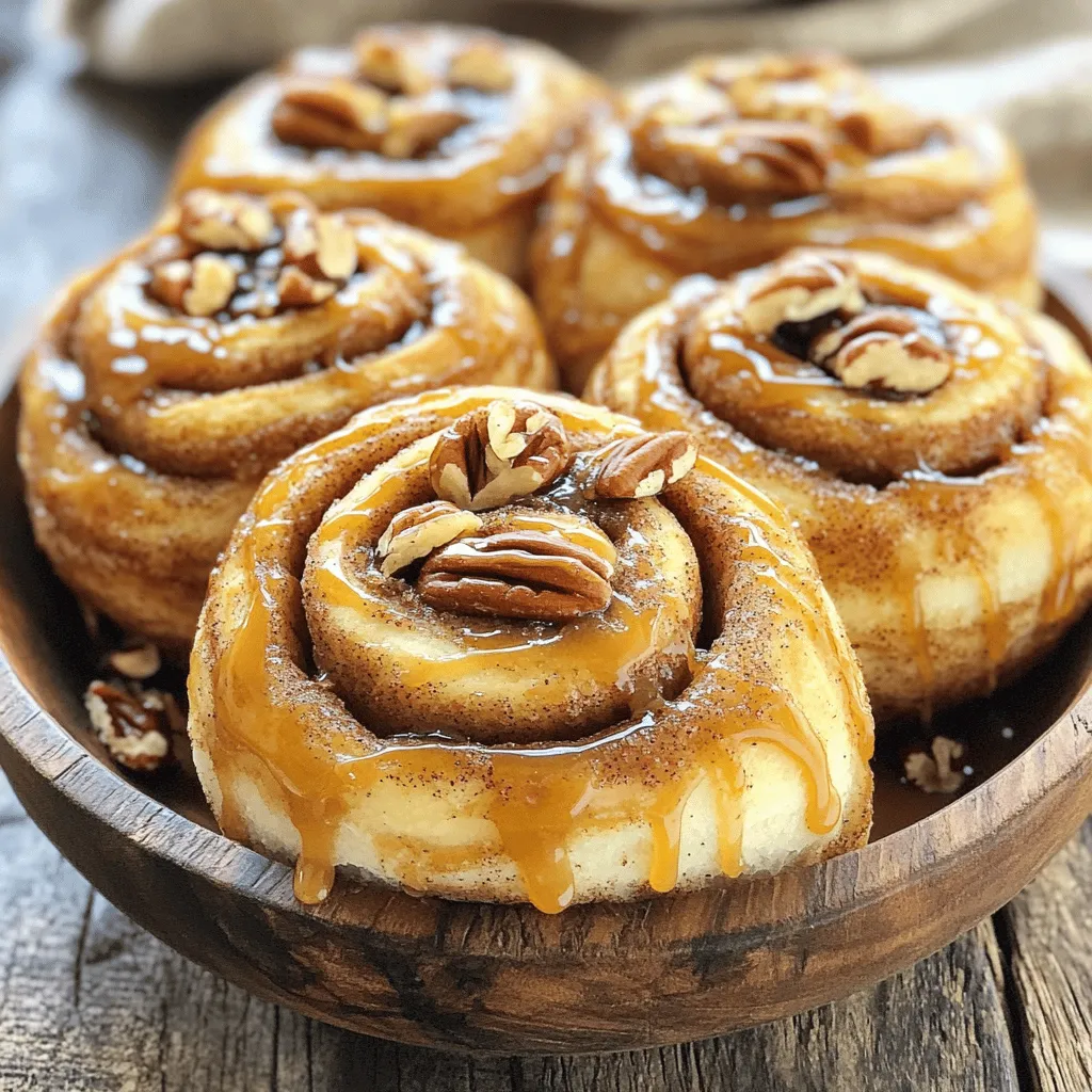 For a beautiful presentation, serve the rolls in a rustic wooden bowl. Drizzle extra caramel sauce over the top for a sweet touch. You can also sprinkle more chopped pecans on top. This adds texture and makes it look fancy. Pair these rolls with a cup of coffee or tea for a cozy treat.