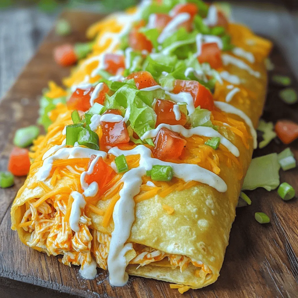 Pair your burritos with dips like ranch or blue cheese dressing. These dips add a creamy touch and balance the heat from the buffalo sauce. For sides, consider serving with chips or a fresh salad. Crunchy chips complement the soft burrito, while a salad adds freshness and color to your meal.