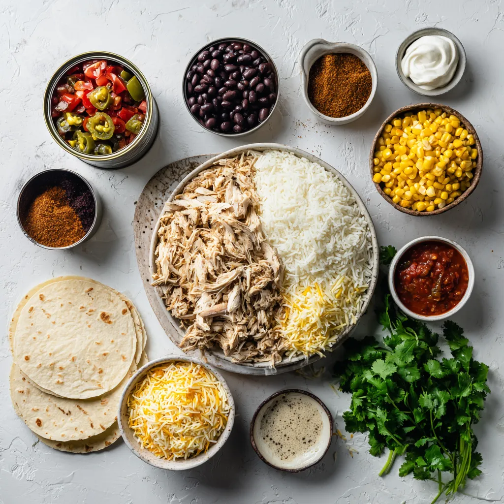 The Chicken Burrito Casserole is simple and packed with flavor. Here’s what you need: