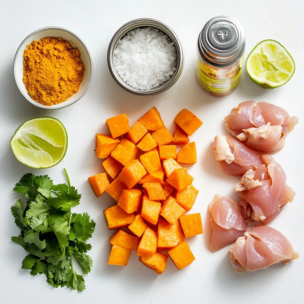You need chicken thighs for a juicy bite. Sweet potatoes add a creamy texture. The onion brings sweetness, while garlic and ginger add warmth. These ingredients lay the foundation for an amazing curry.