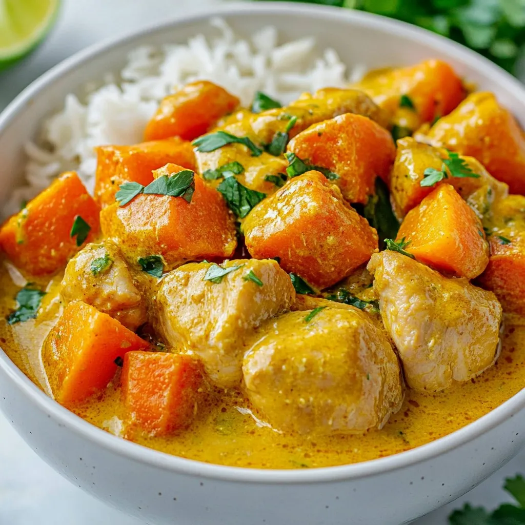 A flavorful and hearty curry made with chicken and sweet potatoes in a creamy coconut sauce.