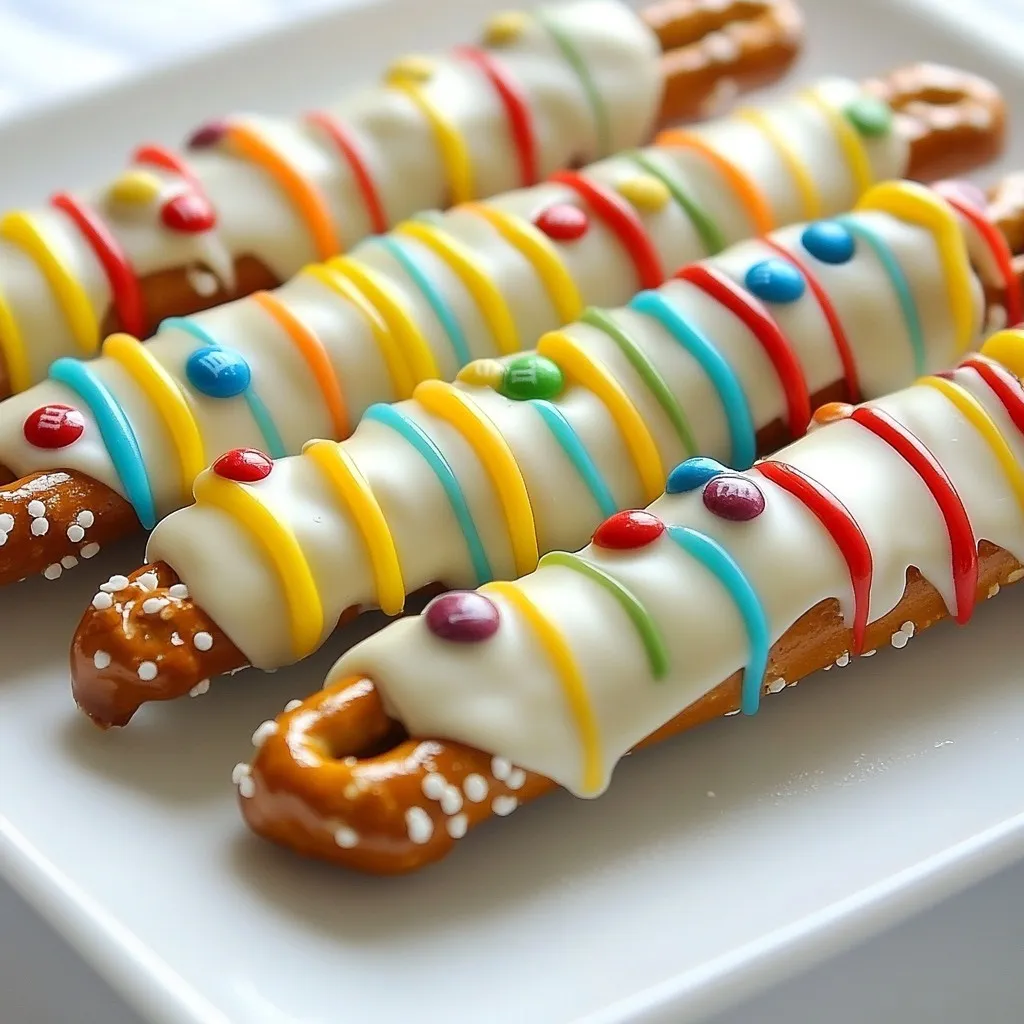 1. Festive Presentation: These pretzel rods are not only delicious but also beautifully colorful, making them a perfect addition to any holiday spread.