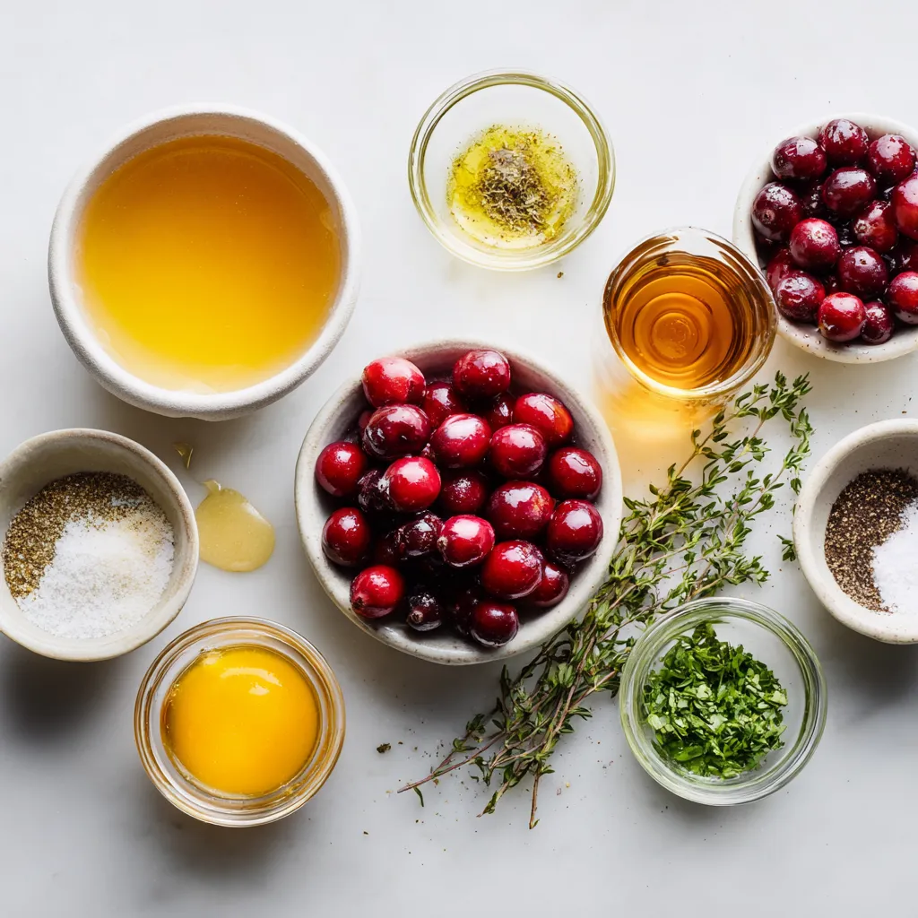 2. Cooking the cranberry glaze: In a medium saucepan, mix together cranberries, honey, orange juice, soy sauce, Dijon mustard, garlic powder, and thyme. Heat on medium until the cranberries burst and the sauce thickens, about 10-12 minutes.