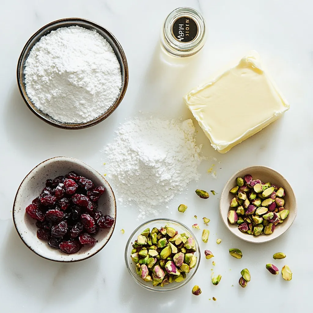 To make these delightful cranberry pistachio shortbread cookies, you need: