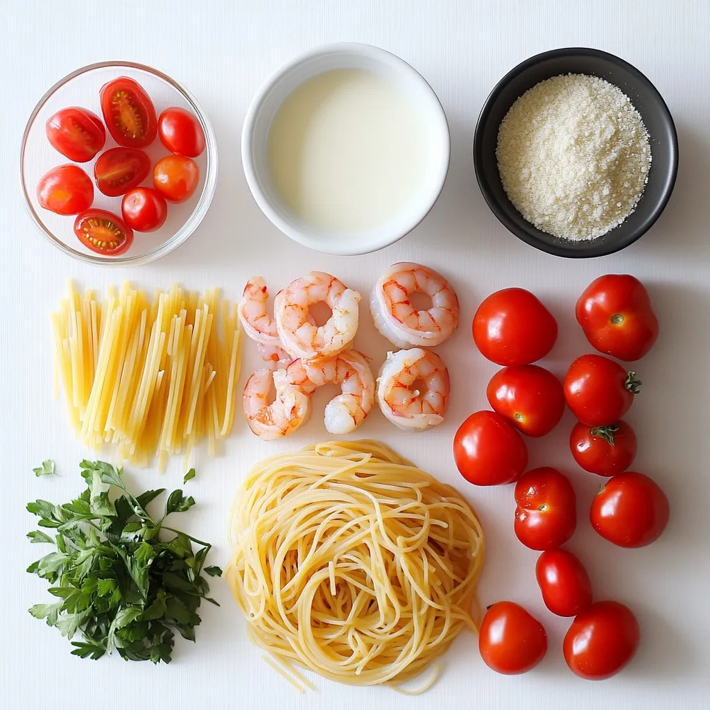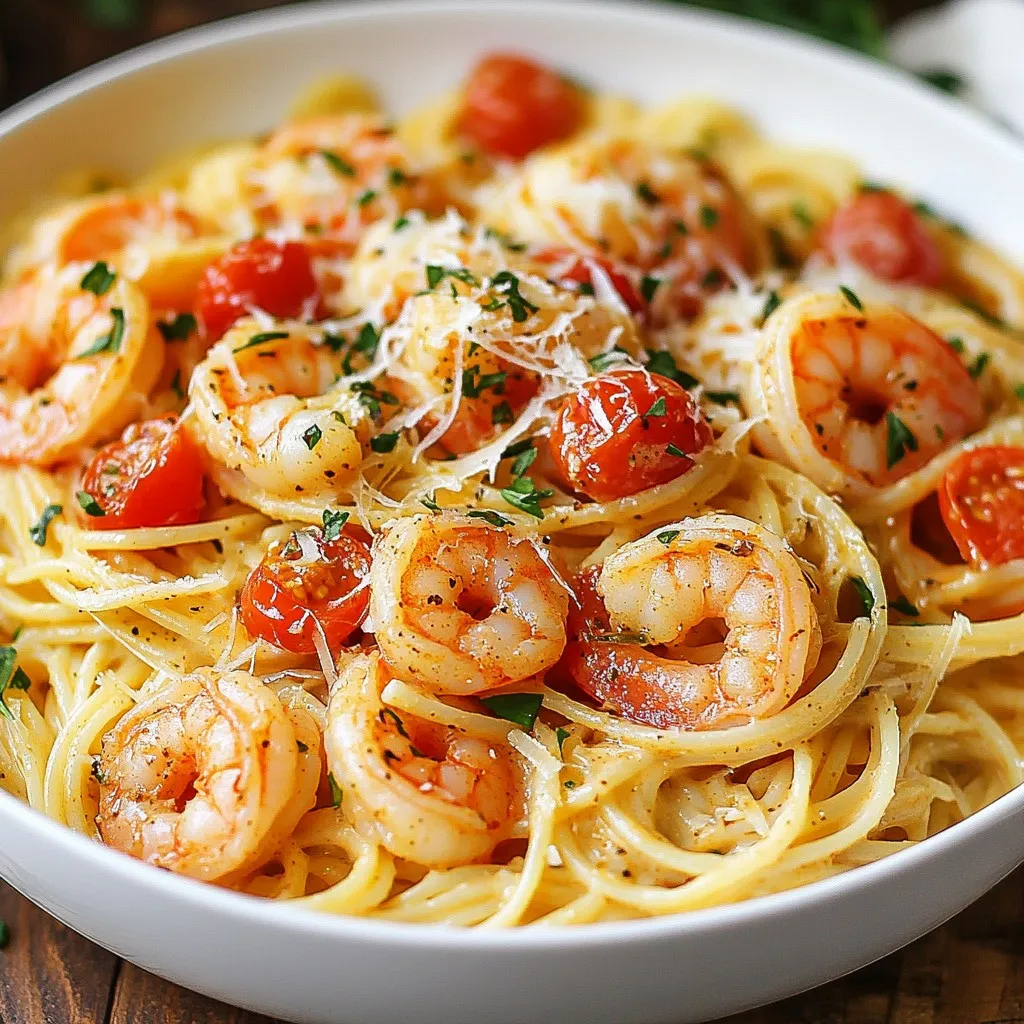 - 300g linguine or fettuccine pasta - 500g shrimp, peeled and deveined - 1 tablespoon Cajun seasoning - 2 tablespoons olive oil - 1 medium onion, finely chopped - 2 cloves garlic, minced - 1 red bell pepper, sliced - 1 cup heavy cream - 1 cup chicken broth - 1 cup cherry tomatoes, halved - Salt and pepper to taste - Fresh parsley, chopped (for garnish) - Grated Parmesan cheese (for serving) When making Creamy Cajun Shrimp Pasta, the right ingredients matter. Choose between linguine or fettuccine. Linguine is thinner, while fettuccine has a wider shape. Both work well with the sauce, but fettuccine can hold more cream. For the shrimp, I prefer using large, fresh shrimp. Ensure they are peeled and deveined. This makes cooking faster and more enjoyable. Toss the shrimp with Cajun seasoning. This adds a kick of flavor. If you cannot find Cajun seasoning, mix paprika, garlic powder, and cayenne pepper for a similar taste. The dish needs fresh vegetables. I use a medium onion, garlic cloves, and a red bell pepper. These add color and taste. The heavy cream gives the sauce its rich, creamy texture. Chicken broth adds depth and enhances the flavor. Cherry tomatoes add sweetness and freshness to the dish. For garnishing, I like to add chopped parsley and grated Parmesan cheese. They add a nice touch to the presentation. You can also sprinkle extra Cajun seasoning for an added punch. Enjoy your cooking! {{ingredient_image_1}} How to Cook Pasta Al Dente To cook pasta al dente, bring a large pot of salted water to a boil. Add the pasta and stir. Cook according to the package time, usually 8-10 minutes. Test the pasta a minute early. It should be firm but not hard. Drain and Reserve Pasta Water Tips Once cooked, drain the pasta in a colander. Remember to save about a cup of the pasta water. This water is starchy and can help your sauce stick to the pasta later. Tossing Shrimp with Cajun Seasoning Take your peeled and deveined shrimp and place them in a large bowl. Add one tablespoon of Cajun seasoning. Toss the shrimp until they are well coated. This step gives the shrimp a bold flavor. Cooking Time for Perfectly Sautéed Shrimp Heat two tablespoons of olive oil in a large skillet over medium heat. Add the seasoned shrimp once the oil is hot. Cook them for about 3-4 minutes until they turn pink and opaque. Make sure not to overcook them; they should be juicy! Sautéing Vegetables: Timing and Techniques In the same skillet, start by adding one medium onion, finely chopped. Cook it for 3-4 minutes until it turns translucent. Next, add two cloves of minced garlic and one sliced red bell pepper. Cook these for another 2-3 minutes until the peppers soften. Combining Ingredients for Optimal Flavor After the veggies soften, push them to one side of the skillet. Add the cooked shrimp back into the skillet. Pour in one cup of chicken broth and bring it to a simmer. Stir in one cup of heavy cream and one cup of halved cherry tomatoes. Let it simmer for about 5 minutes until the sauce thickens. Finally, mix in the cooked pasta and toss until well combined. Season with salt and pepper to taste. - How to Adjust Heat Levels with Cajun Seasoning Start with one tablespoon of Cajun seasoning. Mix it well with the shrimp. Taste it after cooking. If you want more heat, add more seasoning. Remember, you can always add, but you cannot take away. - Thickening the Sauce: Tips and Tricks To thicken the sauce, let it simmer longer. This reduces the liquid and makes it creamier. You can also add a bit more heavy cream. Just be careful not to overdo it. - Alternatives for Heavy Cream If you want a lighter option, use half-and-half or whole milk. For a dairy-free choice, try coconut milk. It gives a nice flavor without the cream. - Choosing Different Vegetables and Proteins You can swap shrimp for chicken or tofu. Add vegetables like spinach, zucchini, or mushrooms. Mix and match to find your favorite combo! - Serving Suggestions for Visual Appeal Serve the pasta in a large bowl. Garnish with chopped parsley and grated Parmesan. This makes your dish look fancy and inviting. - Pairing with Wine or Side Dishes A crisp white wine, like Sauvignon Blanc, pairs well. You can also serve a fresh salad or garlic bread on the side. This adds more color and flavor to your meal. Pro Tips Season Your Shrimp: Before cooking, let the shrimp marinate with Cajun seasoning for at least 15 minutes to enhance the flavor. Use Fresh Ingredients: Opt for fresh shrimp and ripe tomatoes for the best flavor and texture in your pasta dish. Adjust the Spice Level: If you prefer a milder dish, reduce the amount of Cajun seasoning, or add it gradually to taste. Perfect Pasta Texture: Cook the pasta just until al dente, as it will continue to cook slightly when mixed with the sauce. {{image_2}} You can easily swap the shrimp for tofu or mushrooms. Tofu adds a nice texture and absorbs flavors well. Use firm tofu for the best results. Cut it into cubes and toss it with Cajun seasoning. For mushrooms, choose hearty types like portobello or shiitake. Slice them and sauté until they are tender. Both options give a rich flavor, making a great vegetarian dish. If you like heat, add more spices to the shrimp. Try cayenne pepper or extra Cajun seasoning. A dash of hot sauce can also boost the flavor. Mix the spices with the shrimp before cooking. It will create a spicy kick that complements the creamy sauce. Be careful not to overdo it; you want to enjoy the heat without being overwhelmed. To make cooking even simpler, try a one-pot method. Cook the pasta right in the sauce. Start by adding the uncooked pasta, broth, and shrimp to the skillet. This way, the pasta absorbs all the flavors. Once the pasta is tender, stir in the cream and tomatoes. This method saves time and makes cleanup a breeze! Store leftover creamy Cajun shrimp pasta in an airtight container. Place it in the fridge. You can keep it fresh for up to three days. Make sure it cools down before sealing.