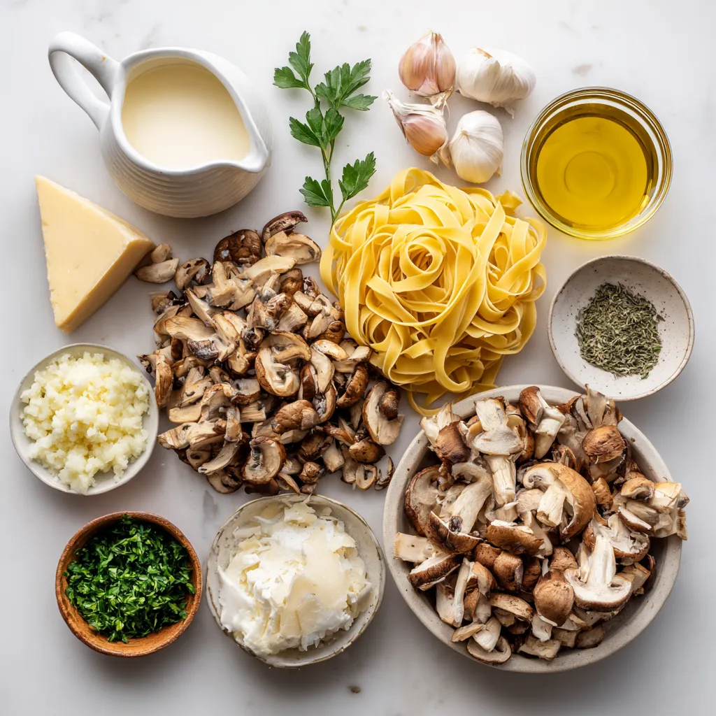 Main Ingredients for Creamy Mushroom Pasta