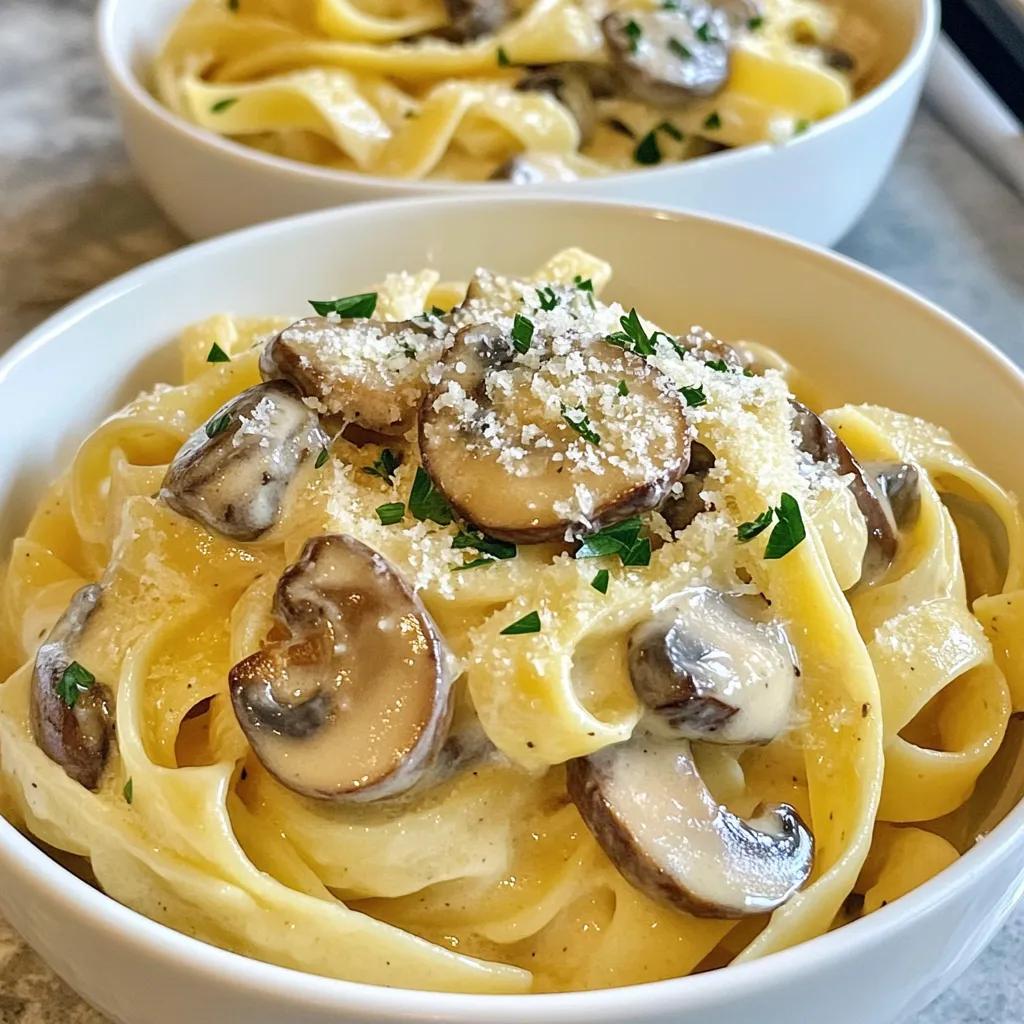 A rich and flavorful pasta dish featuring fettuccine tossed in a creamy mushroom sauce.
