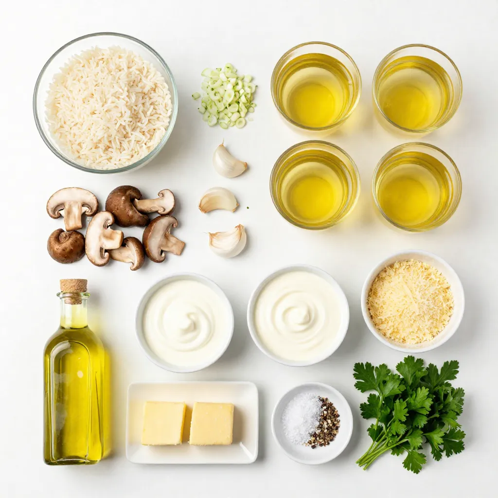 - 1 cup Arborio rice - 1 cup mixed mushrooms (shiitake, cremini, and button), sliced - ½ cup heavy cream - ½ cup grated Parmesan cheese Arborio rice makes risotto creamy. It absorbs broth well. Mixed mushrooms add depth. Shiitake, cremini, and button give great flavor. Heavy cream and Parmesan make the dish rich and smooth. - 2 tablespoons olive oil - 2 tablespoons unsalted butter - 4 cups vegetable broth - Salt and pepper to taste Olive oil and butter help with cooking. They create a nice base for the flavors. Vegetable broth adds moisture and taste. Salt and pepper are a must for seasoning. - Fresh parsley, chopped Fresh parsley adds color and freshness. It brightens the dish and looks great on the plate. Adding it before serving makes your risotto pop! {{ingredient_image_1}} Start by heating 4 cups of vegetable broth in a saucepan. Use medium heat and bring it to a simmer. Keep the broth warm but do not let it boil. This step is key because warm broth helps the rice cook evenly. In a large skillet, heat 2 tablespoons of olive oil and 1 tablespoon of butter. When the oil is hot, add 1 small onion, finely chopped. Cook it for about 4 minutes until it becomes soft and translucent. Next, add 2 cloves of minced garlic and stir for 1 more minute. Then, add 1 cup of sliced mixed mushrooms. Cook them for 5-6 minutes until they are browned and have released their moisture. This adds great flavor to your risotto. Now, add 1 cup of Arborio rice to the skillet. Stir for 2-3 minutes until the rice is lightly toasted. This step enhances the nutty flavor. Begin adding the warm vegetable broth, one ladleful at a time. Stir frequently and wait until most of the liquid is absorbed before adding more. Continue this for about 18-20 minutes until the rice is creamy and al dente. Once the rice is cooked, stir in ½ cup of heavy cream and ½ cup of grated Parmesan cheese. Add the last tablespoon of butter for extra richness. Mix everything well and season with salt and pepper to taste. Remove from heat and let it sit for a few minutes to thicken slightly. Serve hot, garnished with fresh parsley for a beautiful finish. To make creamy risotto, stirring is key. Stir often to release the starch from the rice. This gives risotto its rich, smooth texture. If you don’t stir enough, it may become clumpy. Add your broth slowly. Use one ladle at a time. Wait until most of the liquid is absorbed before adding more. This helps the rice cook evenly. It also helps keep it creamy. You can make your risotto even tastier by adding herbs and spices. Fresh thyme, rosemary, or even a pinch of nutmeg can add depth. You may also try adding garlic powder or onion powder for extra flavor. Incorporate more vegetables or proteins. Peas, spinach, or asparagus add color and nutrients. You can also add cooked chicken or shrimp for a heartier meal. Each addition can change the dish's taste and texture. Serving risotto is all about the look. Use shallow bowls for a nice presentation. This helps the risotto stand out. Top your dish with extra Parmesan cheese and fresh parsley. This adds a pop of color. For a special touch, add a few sautéed mushrooms on top. It makes your dish look gourmet. Choose wide, shallow plates to show off your beautiful risotto. Pro Tips Use Fresh Mushrooms: Choose a variety of fresh mushrooms for a depth of flavor. Shiitake, cremini, and button mushrooms add a wonderful umami taste to the risotto. Stir Constantly: Keep stirring the risotto continuously while adding broth. This helps release the starches from the Arborio rice, creating a creamy texture. Deglaze for Flavor: After sautéing the mushrooms, consider adding a splash of white wine before adding the rice. This deglazes the pan and enhances the overall flavor profile. Let It Rest: Allow the risotto to rest for a couple of minutes after cooking. This helps it thicken and improves the creaminess. {{image_2}} You can change the mushrooms for a new taste. Try using portobello or oyster mushrooms for a richer flavor. If you want a break from mushrooms, add peas or asparagus instead. These veggies add color and texture. You can mix and match to find your favorite combo. To make this dish vegan, swap dairy for plant-based options. Use coconut cream instead of heavy cream. Nutritional yeast can replace Parmesan cheese for the cheesy taste. You can add chickpeas or lentils for extra protein. This way, the dish stays filling and delicious. Want to boost the flavor? Add a splash of white wine when cooking. It gives the risotto a nice depth. You can also use lemon zest for a fresh kick. If you're feeling adventurous, try truffle oil. It adds a fancy touch to your plate. Explore these options to make your risotto unique! To store your creamy mushroom risotto, let it cool down first. Place it in a shallow dish. This helps it cool faster. Cover the dish tightly with plastic wrap or a lid. You can also use a glass container with a seal. Store it in the fridge for up to three days. After three days, the risotto might lose its taste. When you reheat risotto, do it slowly. Use a pan over low heat. Add a splash of broth or water to keep it creamy. Stir it often to prevent sticking. You can also use the microwave. Heat it in short bursts, stirring in between. This will help keep its nice texture. If you want to freeze risotto, divide it into portions. Use freezer-safe bags or containers. Remove as much air as you can. This helps prevent freezer burn. You can freeze the risotto for up to three months. To thaw, move it to the fridge overnight. Reheat it as usual, adding some liquid to restore creaminess. No, Arborio rice is special. It has a high starch content. This makes risotto creamy. Regular rice, like long-grain, lacks this starch. It won't give you the same smooth texture. Using Arborio rice is key to a great risotto. Risotto lasts about 3 to 5 days in the fridge. Store it in an airtight container. Check for signs of spoilage, like a sour smell or mold. If it looks 