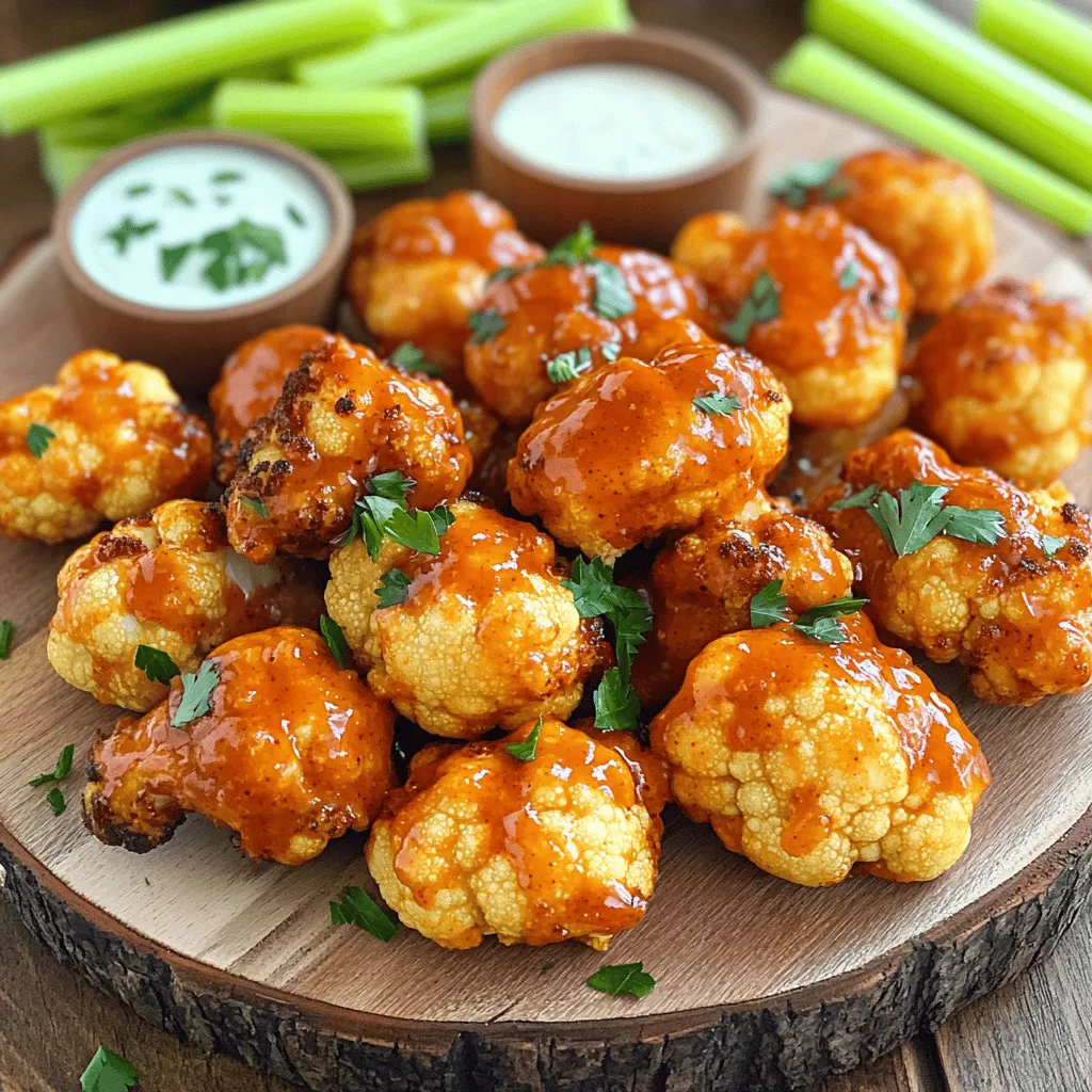Serve your crispy cauliflower wings on a platter. Garnish with freshly chopped parsley for a pop of color. Pair them with celery sticks and a side of ranch or blue cheese dressing for dipping. Enjoy your delicious snack!