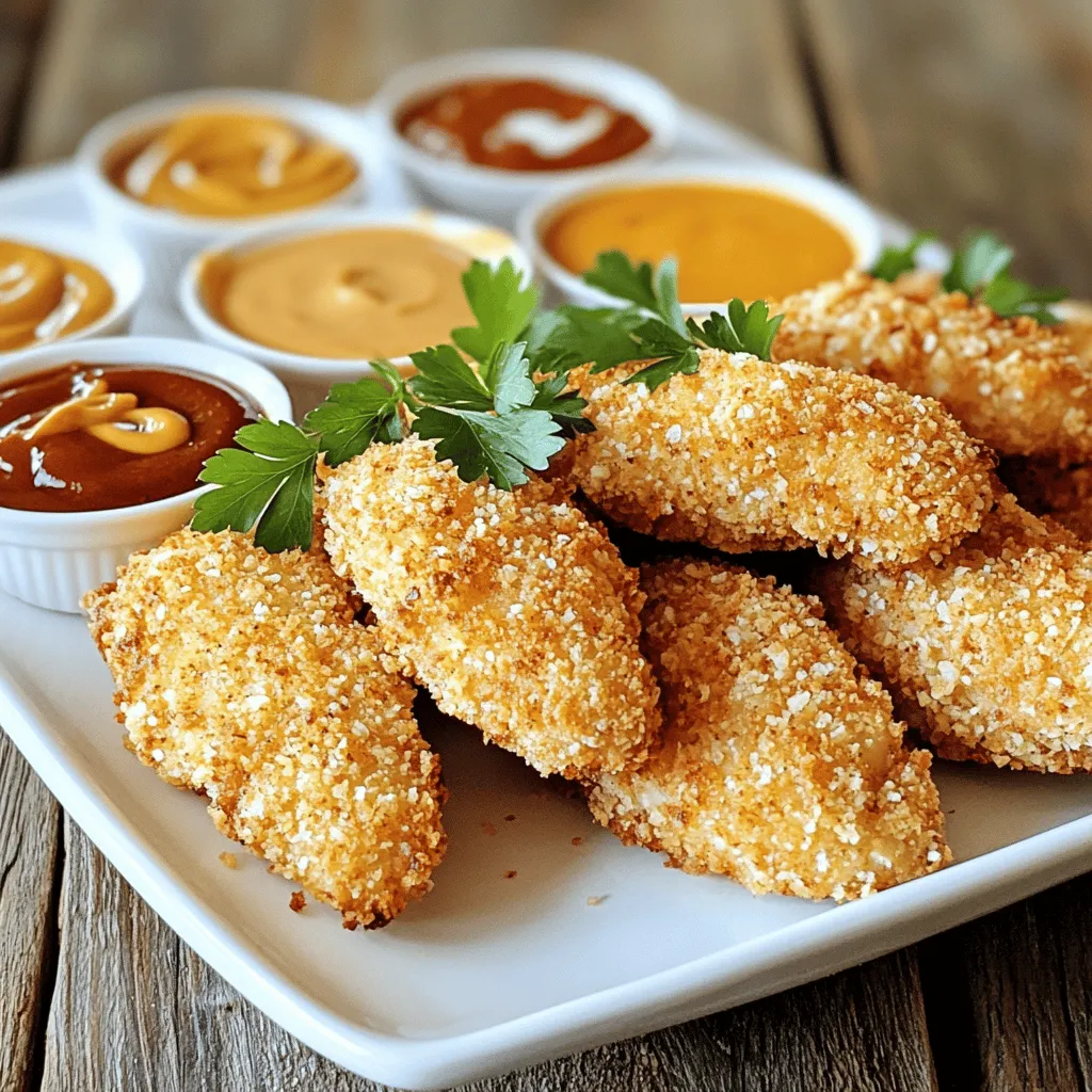 The main ingredients are simple yet vital. Chicken tenderloins form the base. They offer a juicy bite. Buttermilk adds moisture and flavor. The seasoning blend brings out the best in chicken. Garlic powder, onion powder, and paprika enhance the taste. Salt and black pepper balance the flavors. The flour creates a dry layer. Breadcrumbs give that sought-after crunch. Panko breadcrumbs work best for a crispy finish. Olive oil helps the crumbs brown nicely.