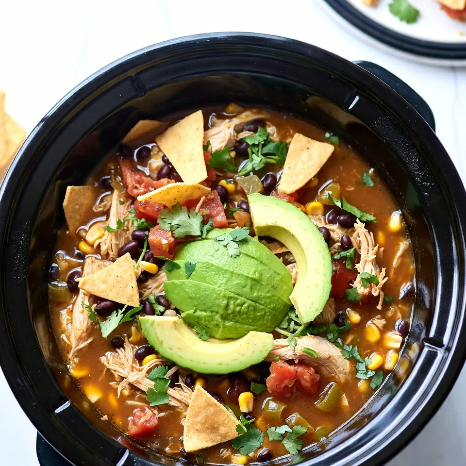 A hearty and flavorful chicken tortilla soup made in a crockpot, perfect for a comforting meal.