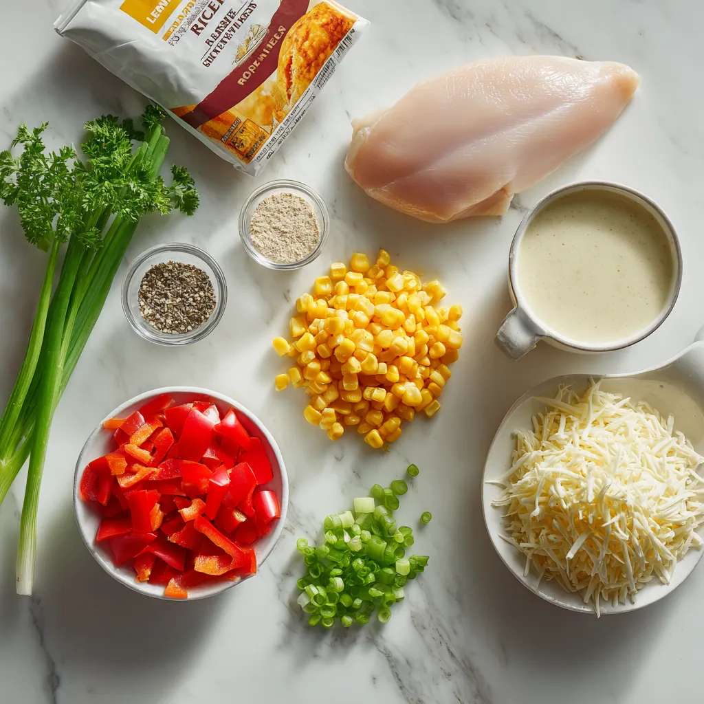 I love adding shredded cheddar cheese. It melts beautifully and gives a nice topping. Frozen corn adds sweetness and color. Diced red bell pepper brings crunch and freshness. Sliced green onions enhance the flavor and look great on top. Don’t forget salt and pepper to taste.
