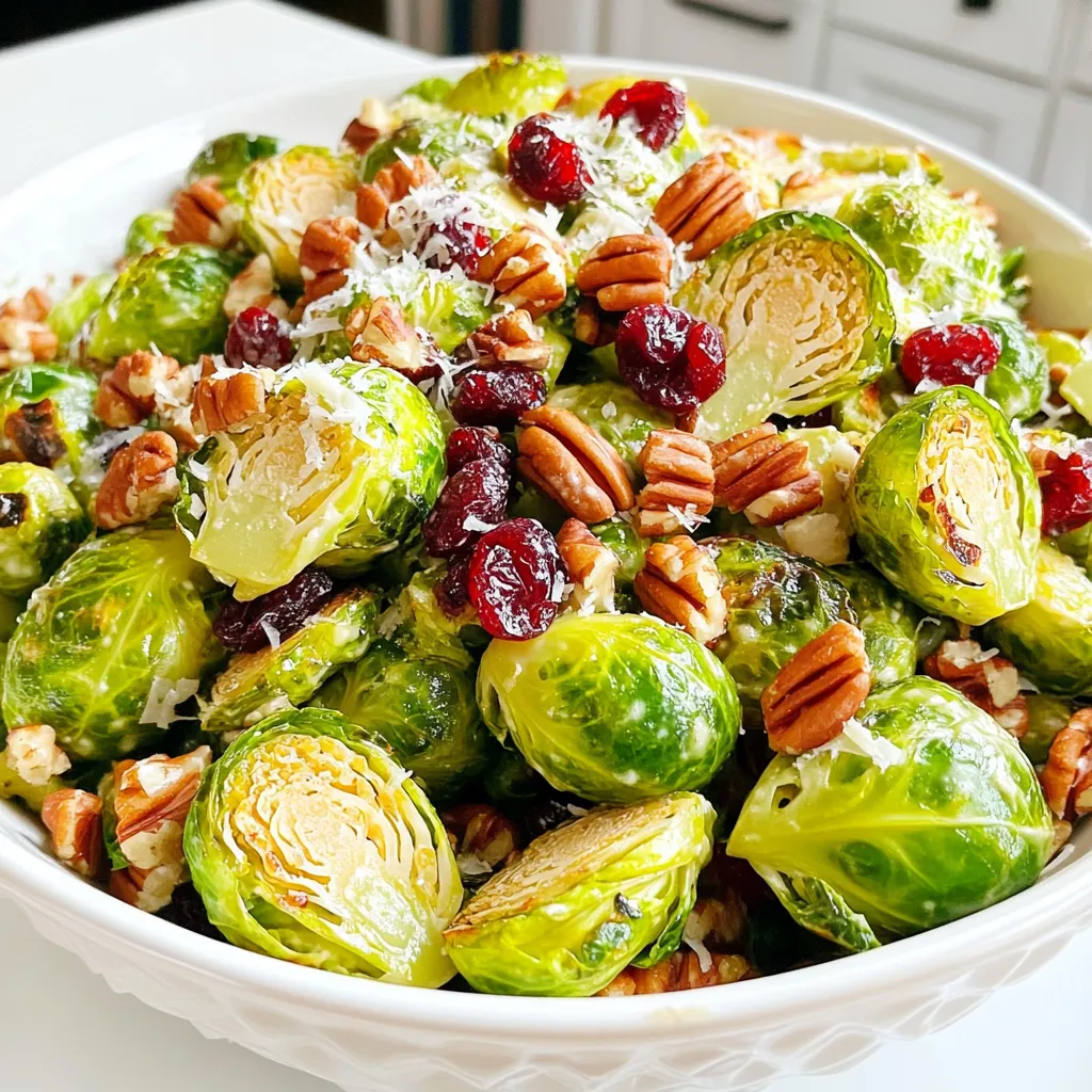 These fresh Brussels sprouts make the salad crisp and hearty. Pecans add a nice crunch, while cranberries give a sweet touch. If you like cheese, Parmesan brings a savory layer that makes everything pop.