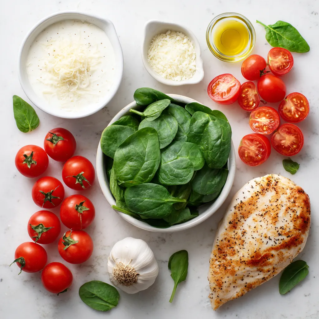 The sauce components are vital. Olive oil adds richness. Garlic gives a nice aroma and taste. Heavy cream makes the sauce creamy and smooth. Grated Parmesan cheese adds a wonderful cheesy flavor. Cherry tomatoes bring sweetness, while fresh spinach adds a pop of color and nutrition. Don’t forget to season with salt and pepper to enhance all the flavors.