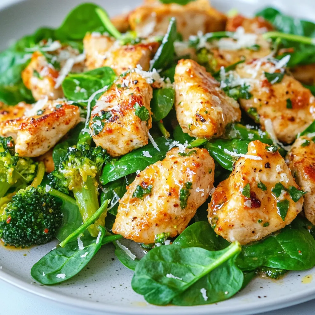 A delicious and healthy dish featuring chicken, broccoli, and spinach, enhanced with garlic and spices.