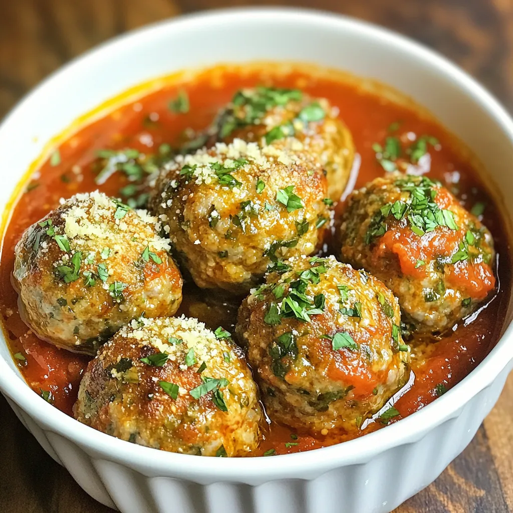 Delicious meatballs made with ground beef or turkey, garlic, and Parmesan cheese, served with marinara sauce.