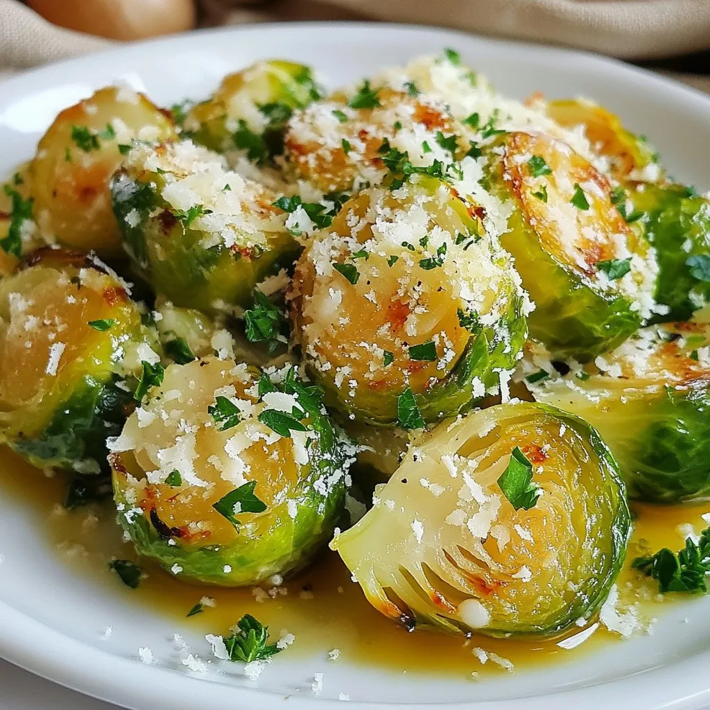 - 1 lb Brussels sprouts, trimmed and halved - 4 cloves garlic, minced - 1/3 cup grated Parmesan cheese - 3 tablespoons olive oil - 1 teaspoon salt - 1/2 teaspoon black pepper - 1/4 teaspoon red pepper flakes (optional) - Fresh parsley, chopped (for garnish) For this dish, I love using fresh Brussels sprouts. They have a nice crunch and a slight sweetness that pairs well with garlic. The garlic adds a bold flavor, while the Parmesan cheese gives a deliciously cheesy note. Olive oil is key here. It helps the Brussels sprouts roast to perfection. A sprinkle of salt and pepper brings out the flavors in each bite. If you like a bit of heat, try adding red pepper flakes. Finally, fresh parsley adds a pop of color and freshness. It makes the dish look great on the table. Each ingredient works together to create a delightful taste that will impress anyone! {{ingredient_image_1}} 1. First, preheat your oven to 400°F (200°C). This high heat helps the Brussels sprouts crisp up nicely. 2. Line a baking sheet with parchment paper. This makes cleanup easier and helps prevent sticking. 3. Next, take your Brussels sprouts and trim off the ends. Then, cut them in half. This helps them cook faster and evenly. 4. In a large bowl, mix the halved Brussels sprouts with minced garlic, olive oil, salt, black pepper, and red pepper flakes if you like some heat. Toss everything well to coat the sprouts. 1. Once mixed, spread the Brussels sprouts in a single layer on the baking sheet. This ensures they roast evenly. 2. Roast them in the preheated oven for about 20 to 25 minutes. Halfway through, give them a toss to help with even cooking. 3. In the last five minutes of roasting, sprinkle the grated Parmesan cheese over the Brussels sprouts. This adds a rich flavor. 4. Continue roasting until the cheese is melted and slightly crispy. This takes just a few minutes. 5. When done, remove the baking sheet from the oven. Garnish your Brussels sprouts with fresh parsley before serving. To get crispy Brussels sprouts, set your oven to 400°F (200°C). This high heat helps them brown well. Roast them for 20-25 minutes. Halfway through, take them out and toss them. This step ensures even cooking and crispiness. You can boost the taste with extra seasonings. Try adding lemon zest or smoked paprika. These add a nice twist. You can also switch the cheese. Use cheddar or feta for a different flavor. Each option brings its own special touch to the dish. Pro Tips Choose Fresh Brussels Sprouts: Select Brussels sprouts that are firm and bright green for the best flavor and texture. Don’t Skip the Toss: Tossing the Brussels sprouts halfway through roasting ensures they cook evenly and develop a nice char. Adjust the Cheese: Feel free to experiment with different types of cheese, like Pecorino Romano or Asiago, for a unique twist. Serve Immediately: For the best taste and texture, serve the Brussels sprouts right after roasting while they are still warm and crispy. {{image_2}} You can change this dish easily. If you want to skip the cheese, try nutritional yeast. It adds a nice cheesy flavor. For fats, you can use melted butter or coconut oil instead of olive oil. This will give a different taste. You can also add other veggies. Carrots or sweet potatoes roast well. They pair nicely with Brussels sprouts. Just cut them into similar sizes. This way, they cook at the same time. If you want a vegan dish, you can skip the cheese. Use a vegan cheese or leave it out completely. The garlic and spices still give great flavor. For gluten-free options, this recipe is already safe. All the ingredients are gluten-free. You can enjoy this dish without worry if you have gluten issues. To keep your Garlic Parmesan Roasted Brussels Sprouts fresh, place them in an airtight container. Store them in the fridge. They can last for up to three days. Make sure they cool down before sealing. This helps avoid moisture buildup. When you reheat them, use the oven for the best results. Preheat your oven to 350°F (175°C). Spread the sprouts on a baking sheet. Heat for about 10 to 15 minutes. This method keeps them crispy. If you use a microwave, they may become soggy. Freezing is a great option for longer storage. To freeze roasted Brussels sprouts, let them cool completely first. Then, spread them on a baking sheet in a single layer. This prevents them from sticking together. Freeze for about two hours. After freezing, transfer the sprouts to a freezer-safe bag. Remove as much air as possible. They can stay in the freezer for up to three months. When ready to eat, thaw them in the fridge overnight. To reheat after freezing, preheat the oven to 375°F (190°C). Spread the sprouts on a baking sheet and heat for 15 to 20 minutes. This restores their crispiness. Enjoy your flavorful Brussels sprouts anytime! How long to roast Brussels sprouts for best results? Roast Brussels sprouts for 20 to 25 minutes at 400°F. This time gives them a nice crisp. Toss them halfway through to ensure even cooking. Look for a golden-brown color on the edges. That’s when they taste best! Can I make this recipe in advance? Yes, you can prepare Brussels sprouts ahead of time. Trim and halve them, then store in the fridge. Toss them with garlic and oil just before roasting. This keeps them fresh and tasty. What can I use instead of Parmesan cheese? Try using nutritional yeast for a vegan option. It adds a cheesy flavor without dairy. You can also use pecorino or another hard cheese if you want a different taste. Are there alternatives to olive oil for roasting? You can use avocado oil or melted coconut oil. Both have high smoke points and work well for roasting. Choose what fits your taste and diet! This blog post explored the easy steps to make tasty roasted Brussels sprouts. You learned about the main and extra ingredients, preparation, and cooking methods. I shared tips for crispiness and flavor, as well as variations to suit different diets. Proper storage and reheating meth