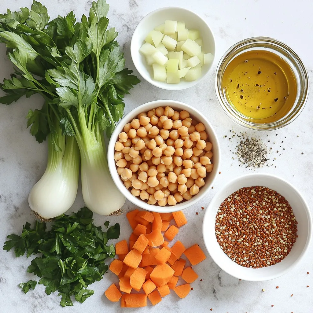 High-protein soup is a dish packed with protein-rich ingredients. These soups often include beans, lentils, and grains like quinoa. They are not only filling but also tasty. A great example is the hearty chickpea and quinoa stew. This stew combines chickpeas with quinoa for a protein boost. High-protein soups offer many benefits. They help build and repair muscles. Protein also keeps you full longer. This means you may eat less later. Soups are also great for hydration. The broth adds water to your diet. Plus, they are easy to make and customize. You can add your favorite veggies and spices. This makes every bowl unique! The hearty chickpea and quinoa stew is full of nutrients. Here’s a breakdown of its key ingredients: - Chickpeas: Provide protein and fiber. - Quinoa: Offers complete protein and essential amino acids. - Spinach: Packed with vitamins A and C. - Carrots and celery: Add vitamins and crunch. - Olive oil: Supplies healthy fats. One serving of this stew has about 15 grams of protein. It also has healthy fiber, which is good for digestion. Enjoying this soup can help you meet your nutritional goals. {{ingredient_image_1}} - 1 cup cooked chickpeas (canned or boiled) - 1/2 cup quinoa, rinsed - 4 cups vegetable broth - 1 medium onion, diced - 2 cloves garlic, minced - 1 carrot, diced - 1 celery stalk, diced - 1 cup spinach, roughly chopped - 1 teaspoon cumin powder - 1 teaspoon paprika - 1 tablespoon olive oil - Salt and pepper to taste - Fresh parsley for garnish 1. In a large pot, heat the olive oil over medium heat. 2. Add the diced onion, carrot, and celery. Sauté for about 5-7 minutes until the veggies soften. 3. Stir in the minced garlic. Cook for another minute until it smells great. 4. Add the rinsed quinoa to the pot with the vegetable broth. Stir well. 5. Bring the mix to a boil. Reduce the heat to a simmer. Add the cooked chickpeas, cumin, and paprika. Cook for 15-20 minutes until the quinoa is done. 6. Turn off the heat. Fold in the chopped spinach and let it wilt. 7. Season with salt and pepper to taste. 8. Serve warm in bowls and sprinkle with fresh parsley. - Prep Time: 10 minutes - Total Time: 30 minutes - Servings: 4 This hearty chickpea and quinoa stew is packed with protein and flavor. It's easy to make and great for any meal. You get a mix of textures and tastes that keep you satisfied. Enjoy this soup as a filling lunch or dinner option! When you choose high-protein ingredients, look for beans, lentils, and quinoa. These foods are great sources of protein. For example, chickpeas pack a punch in protein and fiber. They will fill you up and keep you satisfied. You can also try adding chicken, turkey, or fish for extra protein. Always use fresh vegetables, like spinach, carrots, and onions, to boost flavor and nutrition. To make your soup full of flavor, start by sautéing your veggies. Heat olive oil in a pot and add diced onions, carrots, and celery. Cook them until they are soft. This step adds depth to your soup. Next, add garlic for a fragrant kick. When you add your broth, let it simmer. This allows the flavors to blend nicely. Don’t rush the simmering process; give it time to develop a rich taste. To give your soup a delightful texture, consider adding grains or nuts. Quinoa is a fantastic choice and cooks quickly. It adds a nice bite and helps thicken your soup. You can also mix in greens like spinach or kale. They not only add color but also provide a pleasant crunch. Finally, for a creamy texture, consider blending a portion of the soup. This creates a smooth base while keeping some chunks for interest. Pro Tips Use Fresh Ingredients: Fresh vegetables and herbs enhance the flavor of your stew. Try to use seasonal produce for the best taste. Adjust the Spices: Feel free to adjust the amount of cumin and paprika according to your taste. A pinch of cayenne pepper can add a nice kick! Make it Creamy: For a creamier texture, add a splash of coconut milk or a dollop of yogurt when serving. Store Leftovers Properly: This stew keeps well in the fridge for up to 3 days. Reheat gently on the stove, adding a bit of water if needed. {{image_2}} Vegetarian and vegan soups can be rich in protein. Start with ingredients like lentils, beans, and tofu. These options add great texture and taste. For a hearty dish, try my Hearty Chickpea & Quinoa Stew. Chickpeas and quinoa pack in protein and fiber. You can also use black beans or kidney beans. They add a nice flavor and boost the protein. If you follow a keto diet, you need low-carb soups. A great choice is a creamy cauliflower soup. Use heavy cream and cheese to keep the carbs low. Add chicken or shrimp for extra protein. You can also try a sausage and cabbage soup. The meat adds flavor and protein. Use low-sodium broth to keep it healthy. Spicy soups wake up your taste buds! Think about a spicy tortilla soup. Include chicken, beans, and corn for protein. Add jalapeños for heat and flavor. Another option is a spicy lentil soup. Use red lentils, which cook quickly. Season with cumin and chili powder for a kick. These soups are filling and satisfying. After enjoying your high-protein soup, let it cool first. This step helps keep flavors fresh. Pour the soup into airtight containers. Make sure to leave some space at the top for expansion when freezing. Label each container with the date. This way, you’ll know how long it’s stored. For freezing, divide the soup into smaller portions. This makes reheating easier. Use freezer-safe containers or bags for best results. When you want to eat, thaw the soup overnight in the fridge. You can also use the microwave for quick thawing. Reheat the soup on the stove over medium heat. Stir often to avoid burning. If the soup seems thick, add a splash of broth or water. High-protein soups can last in the fridge for about three to four days. If stored properly, they remain safe to eat. In the freezer, they can last for up to three months. However, the taste and texture may change