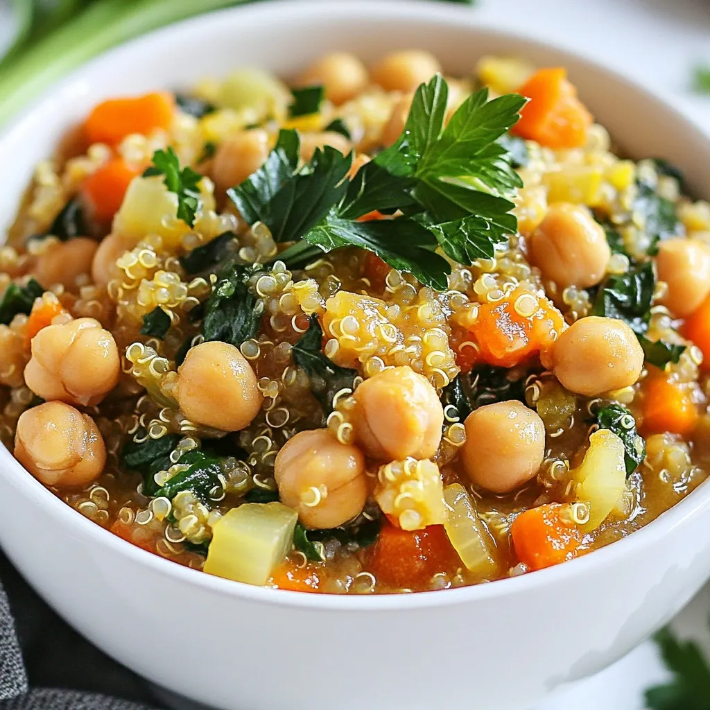 A nutritious and filling stew made with chickpeas, quinoa, and fresh vegetables.