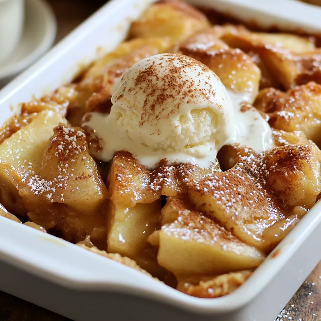 A warm and comforting dessert featuring spiced apples topped with a buttery cobbler crust.