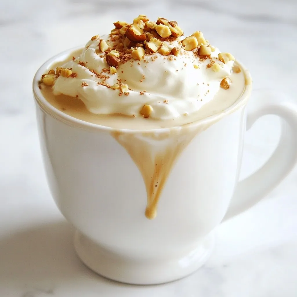To finish, I top it with whipped cream. The cream adds richness. I sprinkle chopped hazelnuts on top for crunch. This makes the drink look and taste amazing!