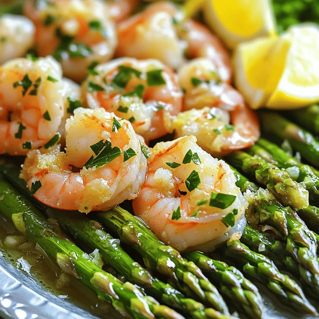 To make Lemon Garlic Shrimp & Asparagus, you need fresh and quality ingredients. Start with one pound of large shrimp. Ensure they are peeled and deveined for easy cooking. Next, grab one bunch of fresh asparagus. Trim the ends to get rid of the tough parts. You will also need four cloves of garlic. Mince them finely to release their bold flavor. Don’t forget two tablespoons of olive oil. This will help the shrimp and asparagus cook nicely.