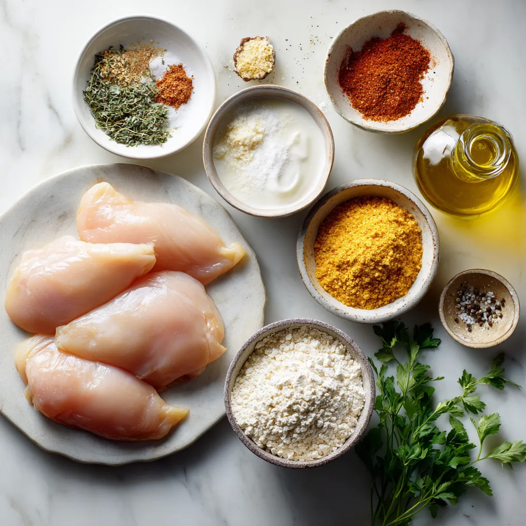 Tender and flavorful chicken breasts marinated in buttermilk and spices, then coated and baked for a crispy finish.