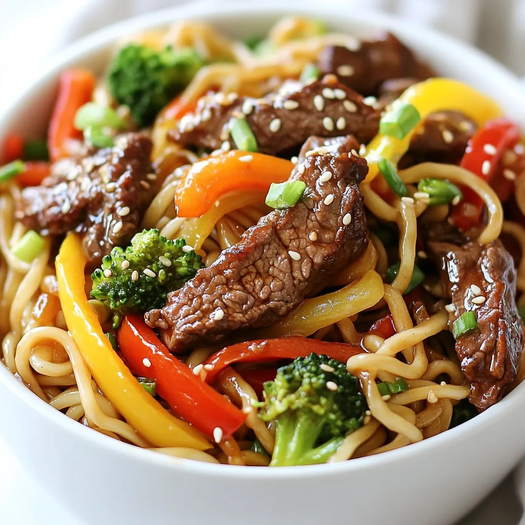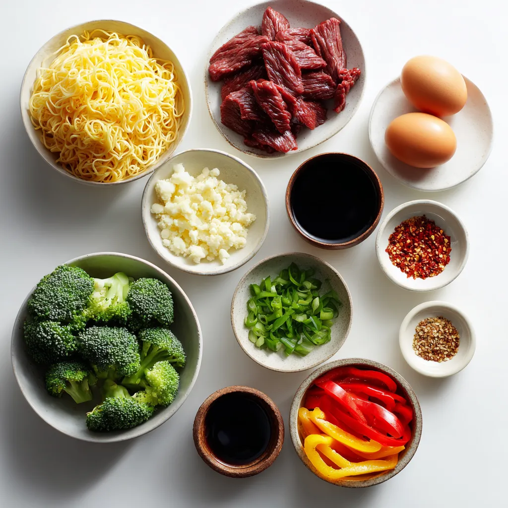 To make this dish, I use beef sirloin for its rich taste and tender texture. This cut cooks fast and pairs well with stir-fries. I also choose egg noodles because they soak up sauce and add a nice chew. Fresh vegetables like bell pepper and broccoli give crunch and color. They add nutrients and a fresh taste to the meal.