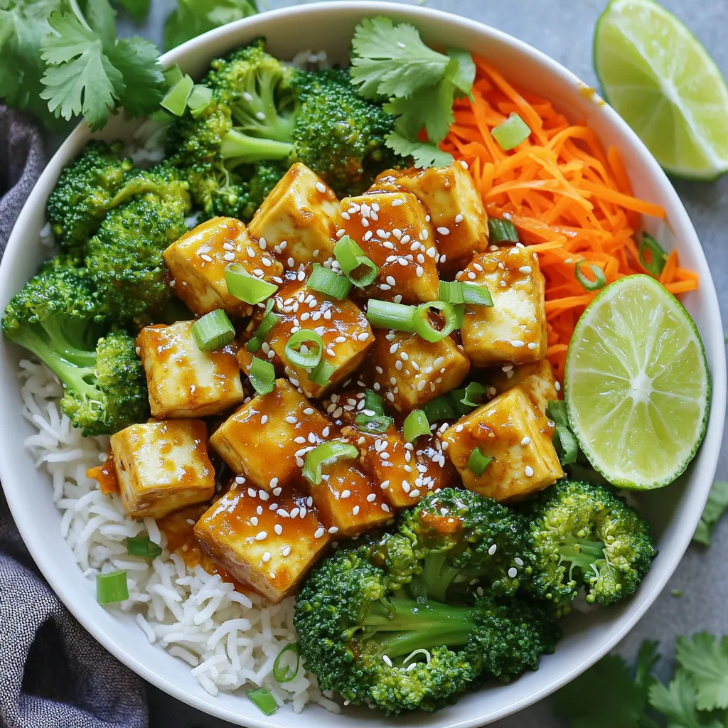 - 1 block (14 oz) firm tofu, drained and pressed - 2 tablespoons cornstarch - 3 tablespoons vegetable oil - 4 garlic cloves, minced - 2 tablespoons soy sauce - 1 tablespoon chili paste (adjust to taste) - 1 cup cooked jasmine rice - 1 cup broccoli florets, steamed - 1 carrot, shredded - 2 green onions, sliced - Fresh cilantro for garnish - Sesame seeds for garnish - Lime wedges, for serving To make Minute Chili Garlic Tofu Bowls, you need simple yet key ingredients. Main Ingredients: - Firm tofu gives the dish its base. It holds up well when cooked. - Cornstarch helps create a crispy outside on the tofu. - Vegetable oil is perfect for frying and adds flavor. Flavor Enhancers: - Garlic brings a strong, savory taste. - Soy sauce adds saltiness and depth. - Chili paste gives the kick! Adjust it to suit your heat level. Fresh Additions: - Jasmine rice serves as a soft base for the bowl. - Broccoli florets add color, crunch, and nutrients. - Shredded carrot gives sweetness and a nice pop of orange. - Green onions sprinkle freshness over your meal. - Fresh cilantro adds a burst of herbal flavor. - Sesame seeds provide a nutty finish. - Lime wedges add a zingy touch that brightens the bowl. These ingredients come together to make a quick, satisfying meal. Enjoy the mix of textures and flavors with every bite! 1. Start by draining the tofu. Place it on a clean towel. 2. Press the tofu for about 15 minutes. This removes excess water. 3. Next, cut the tofu into bite-sized cubes. Aim for even pieces. 4. In a bowl, toss the tofu cubes with cornstarch. Ensure each piece is coated. 1. Heat 2 tablespoons of vegetable oil in a large skillet. Use medium-high heat. 2. Once the oil is hot, add the coated tofu cubes in a single layer. 3. Fry the tofu for 5-7 minutes. Turn them occasionally for even cooking. 4. Watch for a golden, crispy texture. Remove the tofu and set it aside. 1. In the same skillet, add 1 tablespoon of oil. Reduce heat to medium. 2. Add minced garlic and sauté for about 30 seconds. Let it become fragrant. 3. Pour in the soy sauce, chili paste, and maple syrup. Stir well to mix. 4. Let the sauce simmer for a minute until it thickens slightly. 5. Return the crispy tofu to the skillet. Toss it well in the sauce. 6. Cook for another 2-3 minutes until everything is heated through. 1. Start with a scoop of cooked jasmine rice in each bowl. 2. Add the chili garlic tofu on top of the rice. 3. Layer steamed broccoli and shredded carrots over the tofu. 4. Garnish with sliced green onions, fresh cilantro, and sesame seeds. 5. Serve with lime wedges on the side for extra flavor. To get the best tofu, start by draining it well. Pressing the tofu removes extra water. This helps it become crispy when cooked. If you skip this step, your tofu may turn out soggy. I recommend using a tofu press or wrapping it in a clean towel and placing something heavy on top. For frying, you can try different methods. Instead of pan-frying, you can bake the tofu. Simply toss the cubes with cornstarch and oil. Spread them on a baking sheet and bake at 400°F for about 25 minutes. This method gives you a nice crunch without much oil. If you like it spicy, feel free to add more chili paste. Start with a little and taste as you go. You can also switch the chili paste with sriracha for a different kick. If you want to tone down the heat, use less chili paste or try sweet chili sauce. For a vegan option, ensure your soy sauce is labeled as vegan. You can also replace the maple syrup with agave nectar or brown sugar. Both options work great and keep the dish sweet. Garnishing makes your dish look fancy! Try adding fresh cilantro and sesame seeds on top. They add flavor and color. You can also use sliced red peppers or cucumber for a pop of freshness. When serving, make it fun! Use clear bowls to show off the layers. You can even pack these bowls for meal prep. Just keep the sauce separate. That way, your rice and tofu stay fresh until you are ready to eat. {{image_2}} You can change up the veggies in your bowl easily. Here are some good options: - Bell peppers - Snap peas - Zucchini - Spinach Want seasonal choices? Try these: - Asparagus in spring - Corn in summer - Sweet potatoes in fall - Kale in winter Mixing these veggies gives your dish fresh flavors and colors. If you want a different protein, consider these tofu substitutes: - Tempeh - Seitan - Chickpeas You can also add cooked chicken or shrimp for a meatier dish. Cook them separately and mix them in at the end. For gluten-free needs, use tamari instead of soy sauce. This keeps the taste but removes gluten. If you want a low-carb option, swap the jasmine rice for cauliflower rice. This change cuts carbs and adds veggies. Enjoy these variations to make your meal just right for you! To store leftover chili garlic tofu bowls, let them cool first. Place the bowls in airtight containers. This keeps the tofu and veggies fresh. I recommend glass containers or BPA-free plastic ones. They are great for food safety. Store the bowls in the fridge for up to three days. To reheat your tofu bowls, use the microwave or stovetop. For the microwave, place the bowl on a plate. Heat for one to two minutes, stirring halfway. This warms everything evenly. On the stovetop, add a splash of water to a pan. Heat the bowl over low heat, stirring gently. This keeps the tofu crispy. Get creative with leftovers! Try adding them to a salad or a wrap. You can also mix in extra veggies or grains for a new meal. Yes, you can freeze tofu bowls! However, the texture may change a bit. I suggest freezing the tofu and sauce separately from the veggies and rice. Use freezer-safe containers or bags. Write the date on them to track freshness. To thaw, place the container in the fridge overnight. Reheat as mentioned. Enjoy your meal without waste! To make tofu crispy, you need to follow a few key steps: - Drain and press: Start with firm tofu. Drain the water and press it to remove moisture. This helps the tof