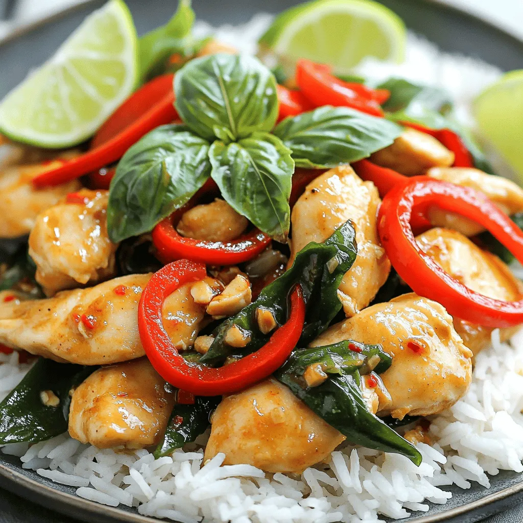 – Serve the Thai Basil Chicken over cooked jasmine rice. Garnish with lime wedges for a refreshing touch. A sprinkle of extra basil can add a nice color to your dish.