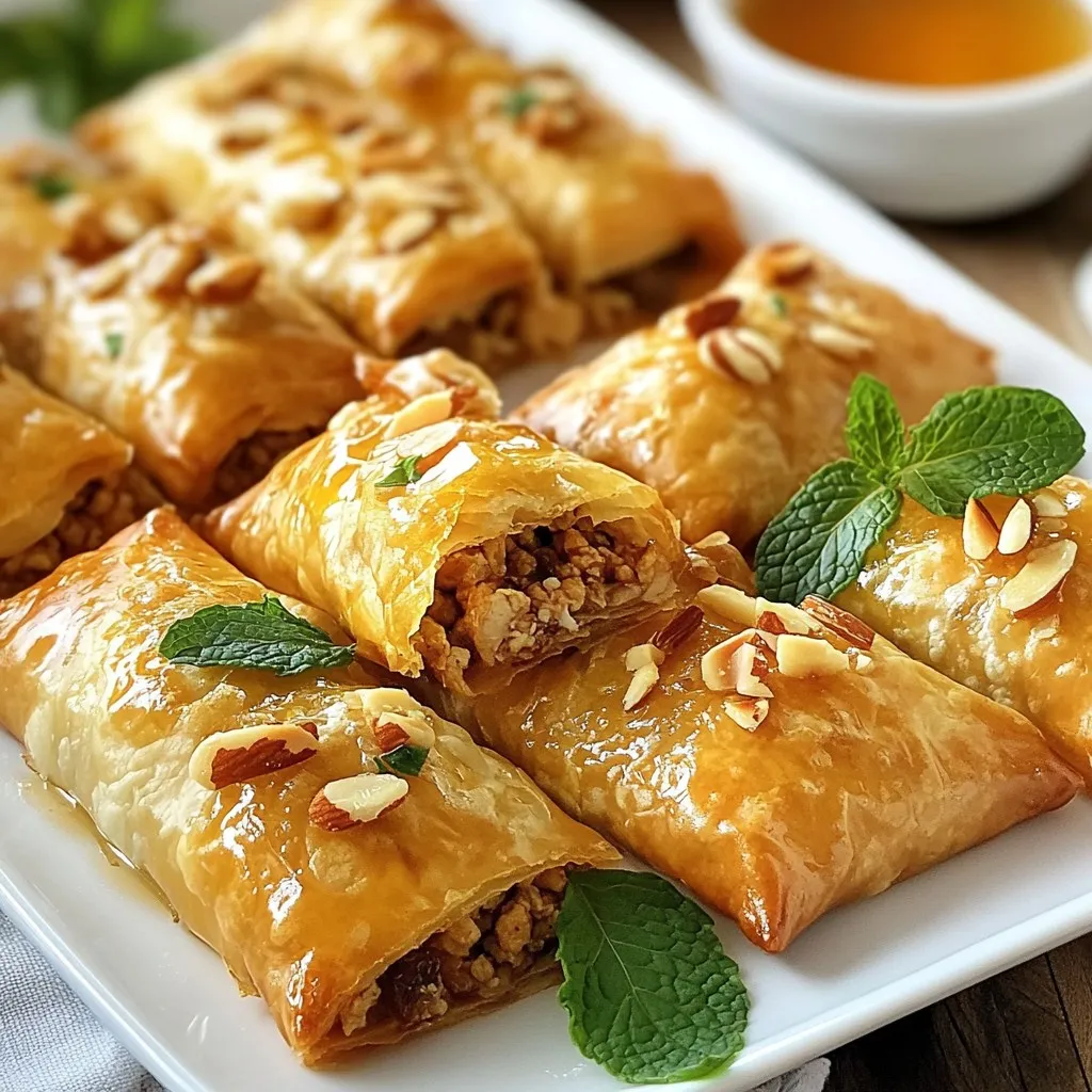 You can pair Moroccan Chicken Briouats with a fresh salad. A simple cucumber and tomato salad works well. You might also enjoy serving them with a side of yogurt sauce for dipping. A light mint tea can complement the meal, adding a refreshing touch. Consider offering some crusty bread to soak up flavors too.