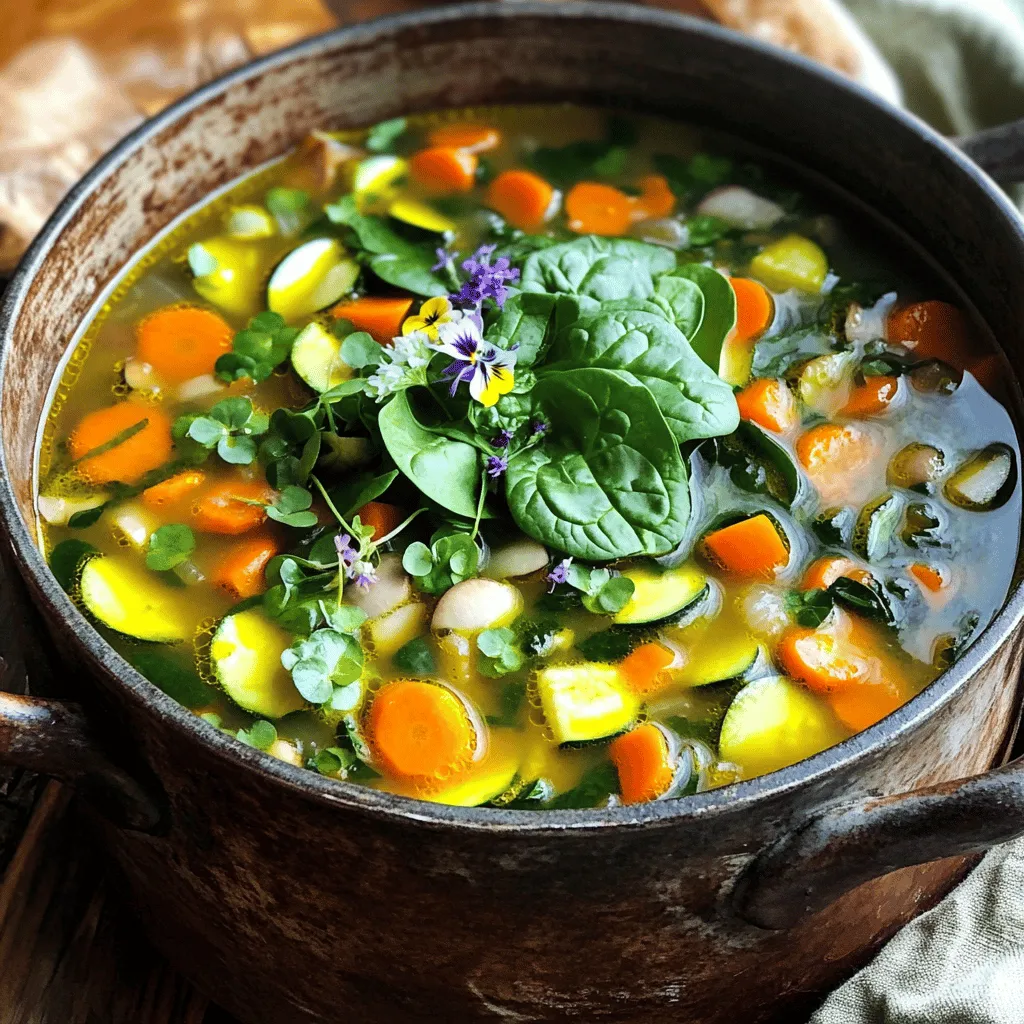 Spinach adds a pop of color and nutrition. Lemon juice brightens the dish, making it refreshing. Finally, edible flowers bring a touch of magic, turning the soup into a feast for the eyes.