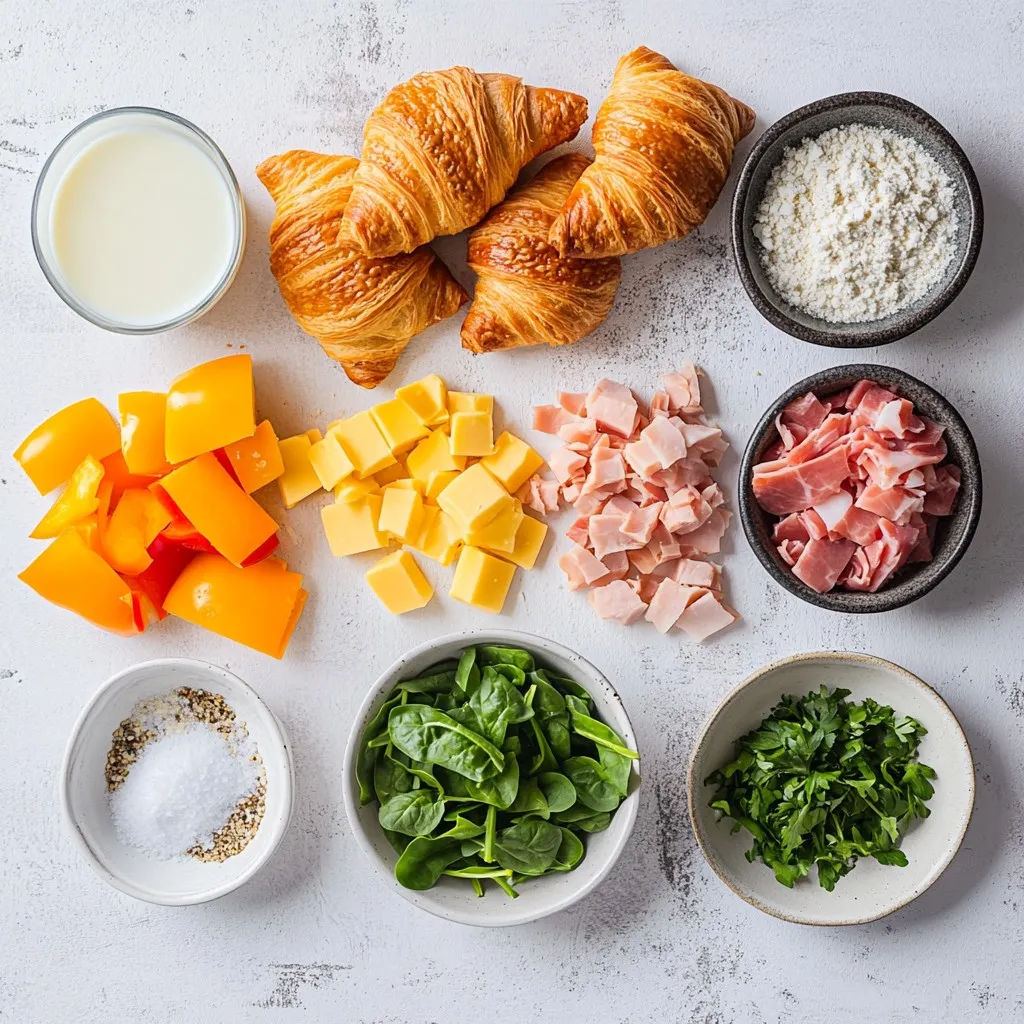 These ingredients work together to form a rich and fluffy dish. The croissants give a soft base, while the eggs and milk create a creamy texture. The cheese adds flavor and gooeyness. You can switch up the ham or turkey with your favorite protein. Fresh veggies like bell peppers and spinach add color and nutrients.