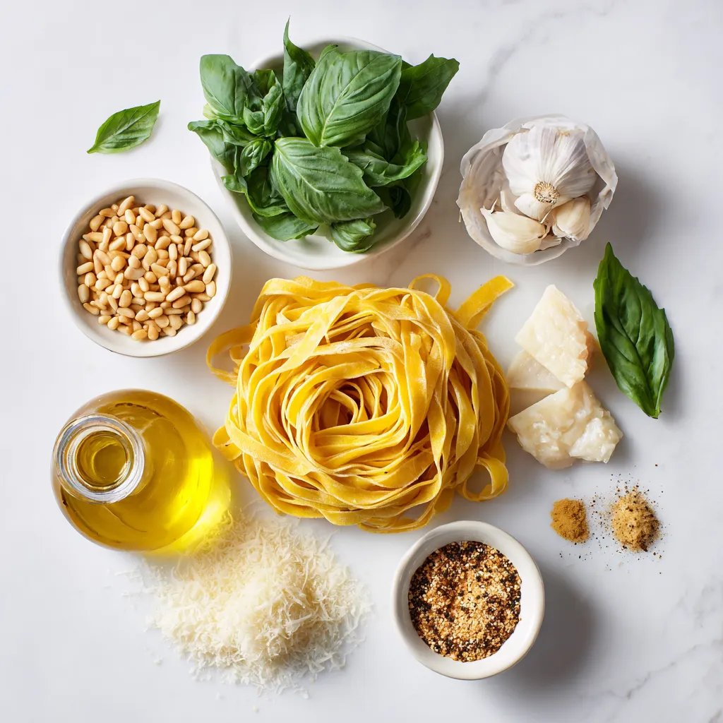 These ingredients create a fresh, vibrant pesto sauce that pairs perfectly with your pasta.