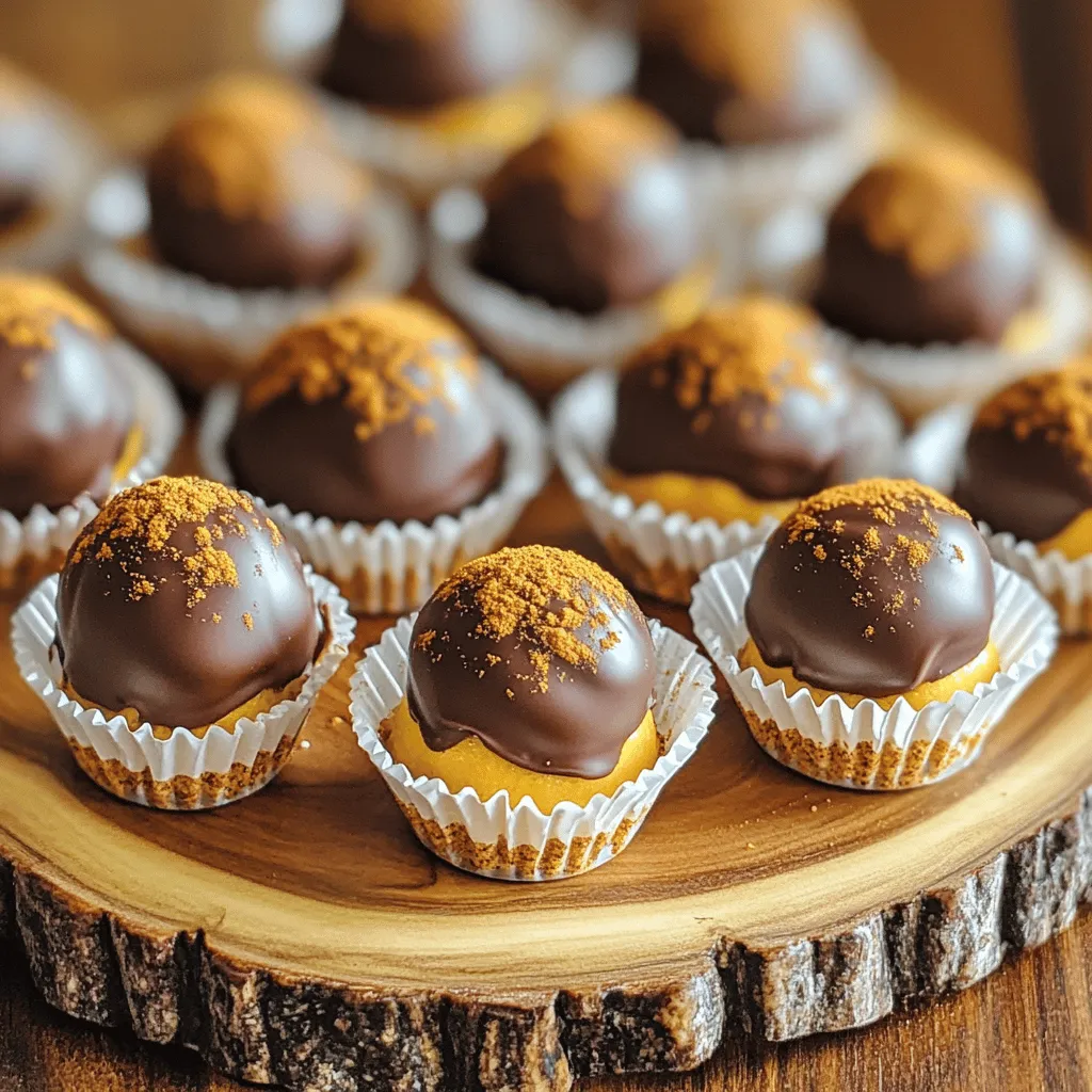 For a fun and festive look, serve your truffles in mini cupcake liners. This makes them easy to grab and adds a nice touch. To garnish, sprinkle a little pumpkin pie spice on top. You can also drizzle extra melted chocolate over the truffles for flair. Arrange them on a pretty platter for a beautiful display at your next gathering.