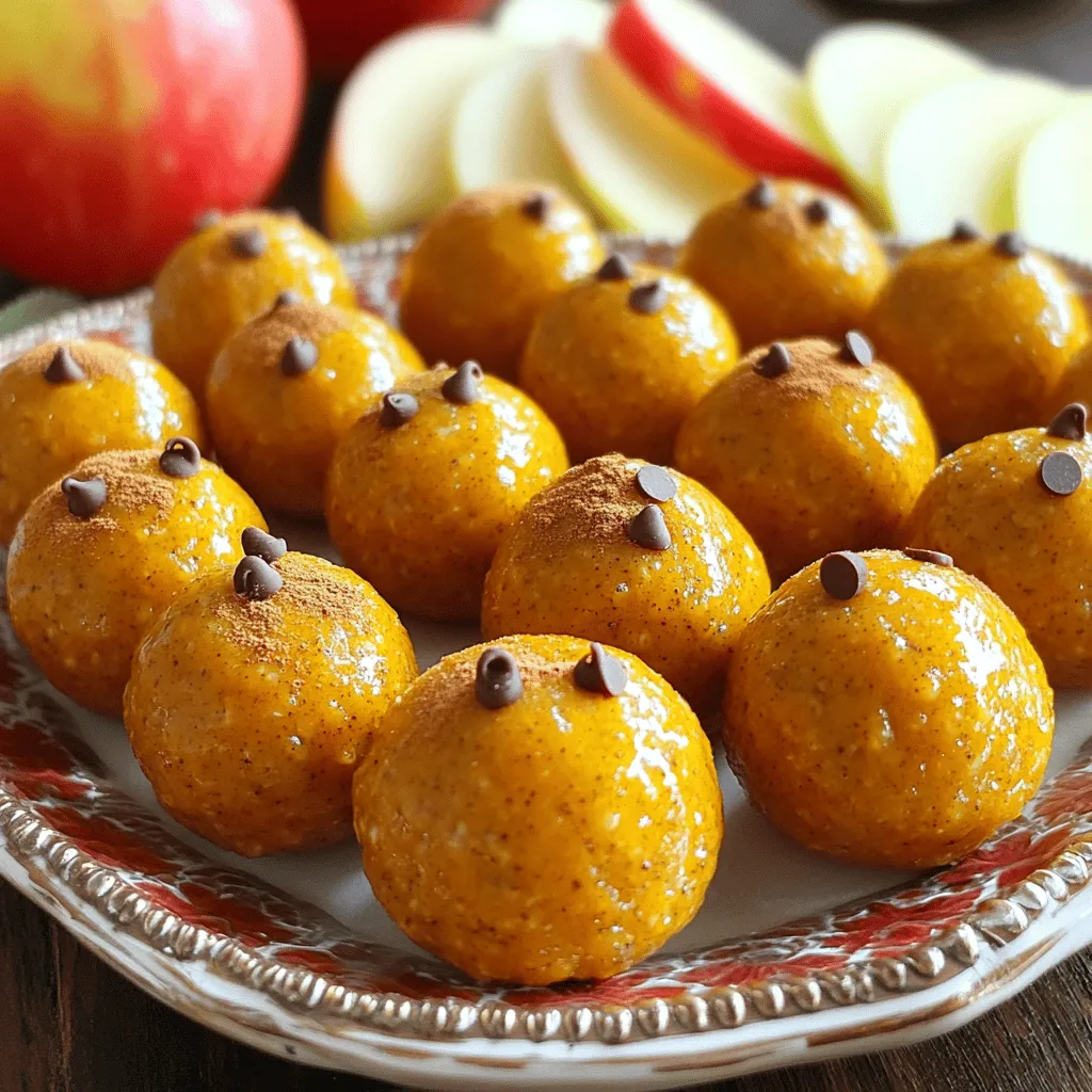 For serving, arrange the protein bites on a nice platter. Sprinkle a little pumpkin pie spice on top for a festive touch. You can serve them as a snack or a healthy dessert.