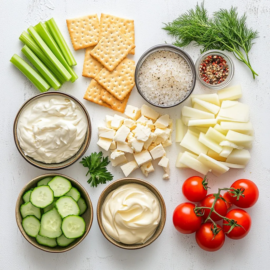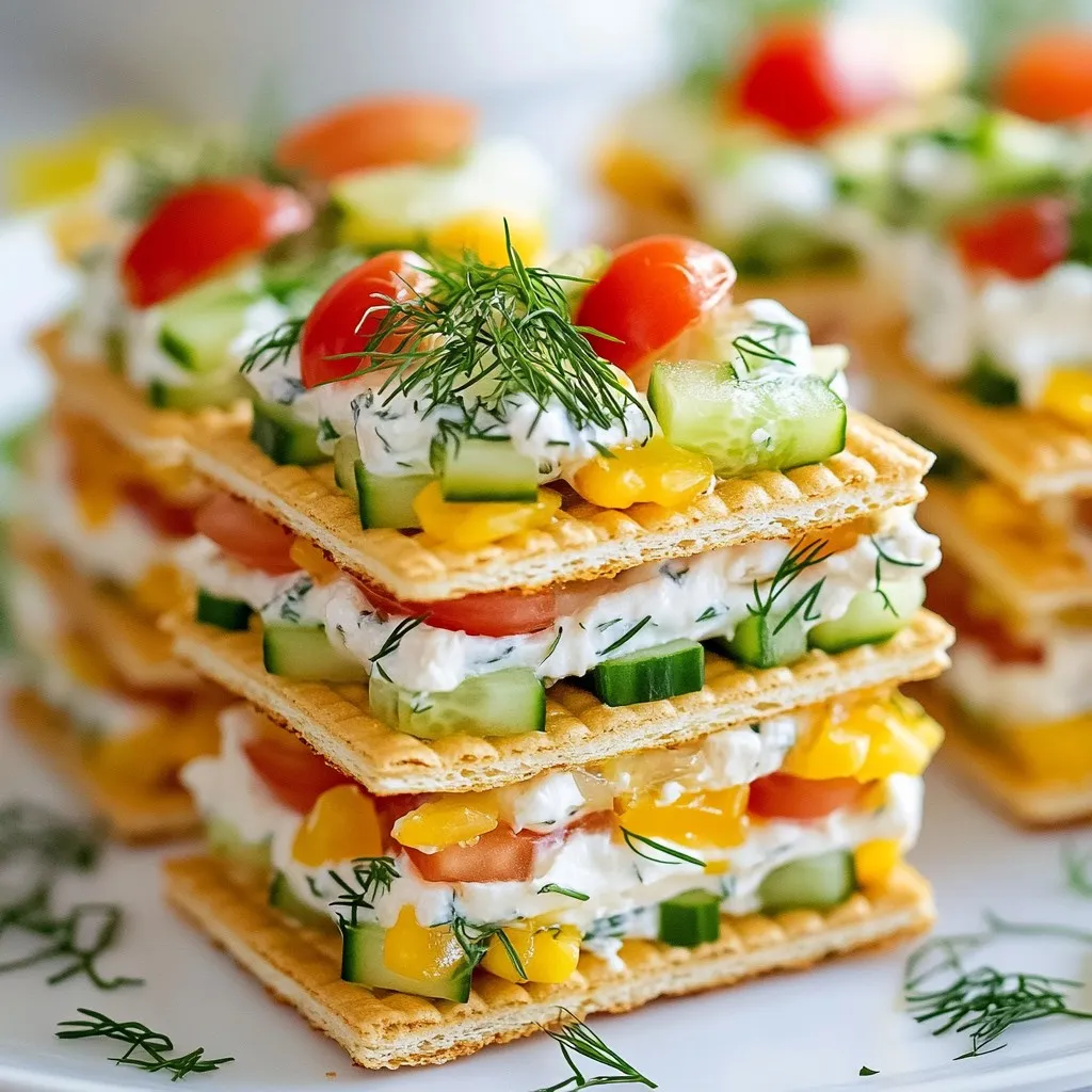 - 1 box of Ritz crackers - 8 oz cream cheese, softened - 1/4 cup mayonnaise - 1 tablespoon Dijon mustard - 1 teaspoon onion powder - 1 teaspoon garlic powder - 1/2 cup finely diced celery - 1/2 cup diced cooked chicken or deli turkey - 1/4 cup chopped fresh dill or parsley - Salt and pepper to taste - Optional: Thinly sliced cucumber or cherry tomatoes for garnish To measure ingredients accurately, use measuring cups and spoons. For the cream cheese, let it sit out for a bit. This makes it easier to mix. When dicing celery and chicken, make sure the pieces are small. This helps the filling spread evenly on the crackers. If you want a different taste, try these swaps: - Use Greek yogurt instead of mayonnaise for a tangy flavor. - Swap chicken for canned tuna or chickpeas for a vegetarian option. - Use chives or basil instead of dill for a fresh twist. - Try low-fat cream cheese if you want a lighter filling. These options keep your sandwiches tasty and fun while catering to different diets! {{ingredient_image_1}} Start with a mixing bowl. Add 8 oz of softened cream cheese. Then, pour in 1/4 cup of mayonnaise. Next, stir in 1 tablespoon of Dijon mustard. Add 1 teaspoon of onion powder and 1 teaspoon of garlic powder. Mix until it’s smooth and creamy. Now, it's time to add some crunch! Fold in 1/2 cup of finely diced celery. Then, add 1/2 cup of diced cooked chicken or deli turkey. Finally, stir in 1/4 cup of chopped fresh dill or parsley. Don’t forget to season with salt and pepper to taste. Make sure everything is well mixed. Grab your Ritz crackers. Take one cracker and spread a generous layer of your cream cheese mixture on top. Next, place another Ritz cracker on the cream cheese layer. Press gently to form a sandwich. Repeat this until you use all the mixture. You’ll have a nice stack of sandwiches. For the best flavor, refrigerate the sandwiches for about 30 minutes. This helps the flavors blend well together. If you want a pretty touch, add thin slices of cucumber or cherry tomatoes on top. You can slice the sandwiches for easier serving too. Enjoy your tasty Ritz cracker party sandwiches! To make a smooth cream cheese mix, start with softened cream cheese. This helps it blend well. Use a fork or a hand mixer to whip it. Mix in mayonnaise and Dijon mustard for a tangy kick. Add onion and garlic powder for flavor. Stir until the mix is creamy and smooth. You want a nice spread that holds together well. Make sure to taste your blend. You can add more salt or pepper to your liking. If you want a little crunch, mix in finely diced celery. This adds texture and freshness to the blend. When arranging your Ritz cracker sandwiches, think about color and height. Stack them neatly on a platter. You can alternate colors if you use different toppings. For example, thinly sliced cucumbers or bright cherry tomatoes look great on top. Use small toothpicks to hold the sandwiches together. This makes them easy to pick up. You can also create a fun display with a variety of shapes. For a touch of class, serve them on a tiered stand. This adds height and draws the eye. These sandwiches pair well with many drinks. Try serving them with iced tea or lemonade for a refreshing taste. For a more adult option, pair them with white wine or a light beer. You can also serve them with veggies and dip. Carrot sticks or bell pepper slices add crunch and color. This creates a fun, balanced snack spread. Add some fruit, like grapes or berries, for a sweet touch. This mix of flavors will delight your guests. Pro Tips Use Room Temperature Ingredients: Ensuring your cream cheese is softened at room temperature allows for easier mixing and a smoother consistency in your filling. Add a Crunch: For an extra layer of texture, consider adding chopped nuts or crispy bacon bits to the filling for a delightful crunch. Make Ahead: Prepare the filling a day in advance and store it in the refrigerator. This not only saves time but also enhances the flavors as they meld together. Garnish for Presentation: Elevate your sandwiches by garnishing them with fresh herbs or colorful vegetable slices, making them visually appealing on your serving platter. {{image_2}} You can swap the chicken or turkey for other proteins. Tuna or ham works well. For a fun twist, try crab meat. You can also use a mix of proteins. Just keep the cream cheese base the same. This keeps the flavor rich and creamy. For a vegetarian option, leave out the meat. Add more diced veggies instead. You can use bell peppers, carrots, or olives. Cream cheese pairs great with these. Try adding avocado for creaminess. This version is fresh and colorful. Seasonal flavors can make your sandwiches pop. In spring, add fresh herbs like basil or chives. In summer, use diced tomatoes for a juicy bite. In fall, try adding apple chunks for sweetness. In winter, mix in some roasted red peppers for warmth. These flavors keep it interesting and fun. You can store leftover Ritz Cracker sandwiches easily. Place them in an airtight container. Keep them in the fridge for up to three days. If you leave them out, they may get soggy. So, always store them cold. Use a shallow plastic or glass container. This helps keep the sandwiches fresh. Make sure it has a tight lid. If you stack them, place parchment paper between layers. This stops them from sticking together. If you want to save them longer, freezing is a great option. Wrap each sandwich tightly in plastic wrap. Then, place them in a freezer bag. Remove as much air as possible to prevent freezer burn. You can freeze them for up to a month. When you're ready to eat, thaw them in the fridge overnight. Enjoy fresh flavors again! Yes, you can make these sandwiches ahead of time. Prepare them a few hours before your event. This helps the flavors mix well. Just store them in the fridge. I recommend chilling them for at least 30 minutes. The longer they sit, the better they taste. If you want a different spread, try ricotta or goat cheese