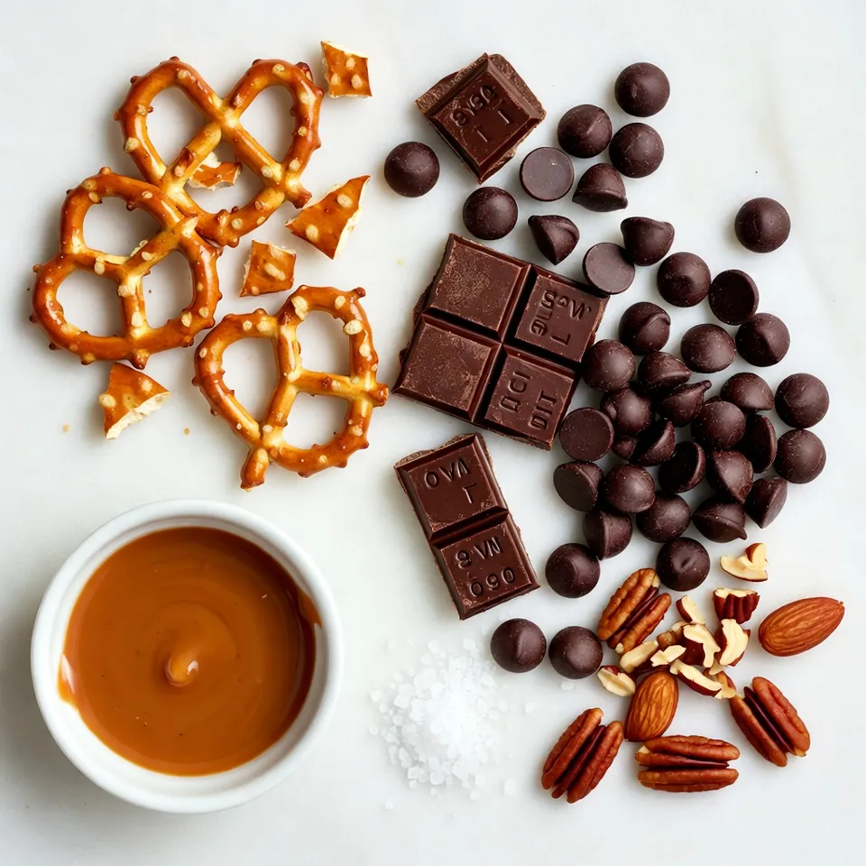 To make salted caramel pretzel bark, you need simple ingredients. The first is pretzels. They give a nice crunch. You want to break them into pieces. This helps them mix well with the chocolate and caramel.