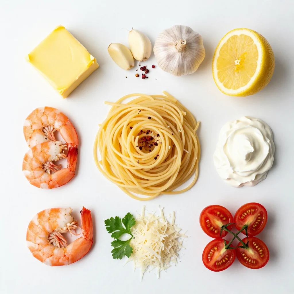 The main ingredients create a rich and tasty dish. Linguine or penne pasta provides a perfect base. Large shrimp adds a sweet and tender touch. Unsalted butter gives a rich flavor, while garlic brings a warm aroma. Red pepper flakes add a mild kick. Lemon brightens the dish with freshness. Heavy cream makes it creamy and smooth. Mozzarella and Parmesan cheese create a gooey and flavorful topping. Cherry tomatoes add a pop of color and sweetness. Fresh parsley gives a nice green touch. Salt and pepper enhance all the flavors.