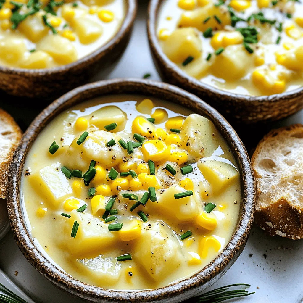 For presentation tips, ladle the chowder into bowls and serve it hot. Pair it with crusty bread on the side. This makes it perfect for dipping. Enjoy your creamy potato corn chowder with a touch of warmth and comfort!