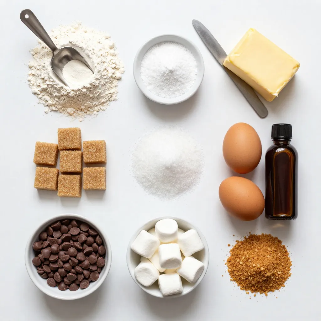 To make S’mores Cookie Bars, gather these simple ingredients: