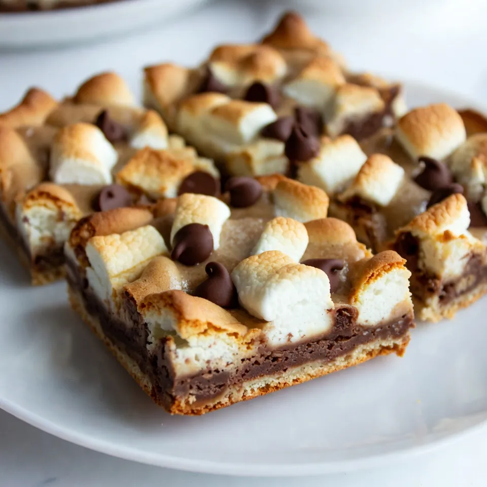 Delicious cookie bars inspired by classic s'mores, featuring chocolate, marshmallows, and graham crackers.