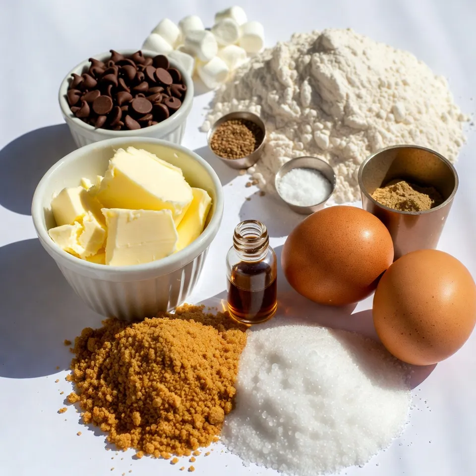All-purpose flour is the base. Baking soda makes the bars rise. Salt balances the sweet flavors. Semisweet chocolate chips bring richness. Mini marshmallows add that classic s’mores touch. Choose soft, fluffy marshmallows for the best texture.