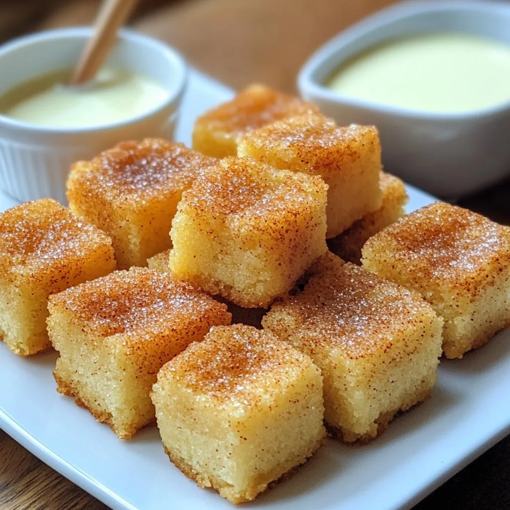 Arrange the blondie bites on a decorative plate and dust with a little extra cinnamon sugar for an inviting touch. Optionally, serve with a small bowl of melted chocolate for dipping!